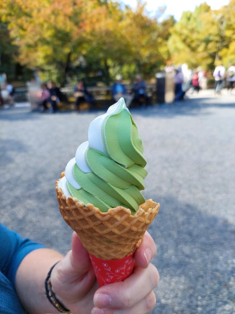 Was wir an Japan so schätzten waren die überall an jeder Strassenecke, bei jeder Sehenswürdigkeit, aufgestellten Getränkeautomaten, welche auch nicht so teuer waren wie bei uns die Automaten. So konnte man immer und überall ein günstiges Wasser bekommen. Hier probierte ich auch ein Macha-Vanille-Soft-Ice. Ich bin zwar nicht so ein Grüntee-Fan aber das war wirklich sehr sehr gut.