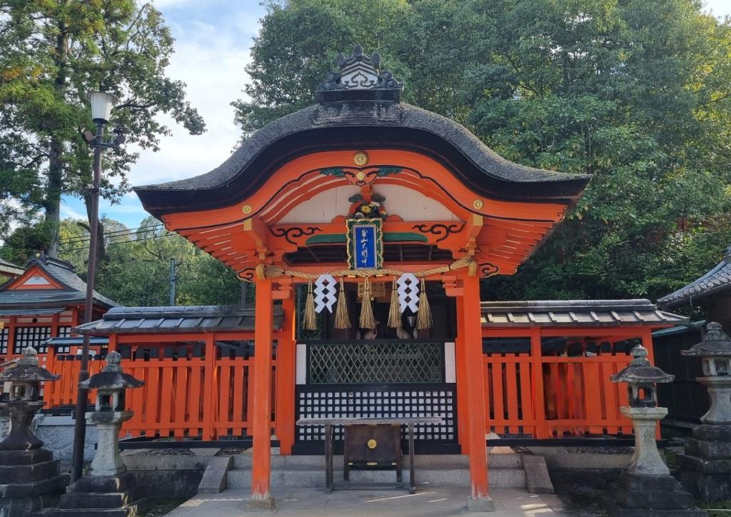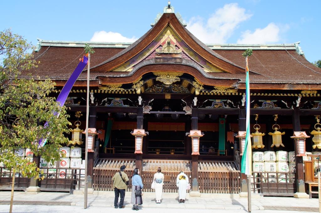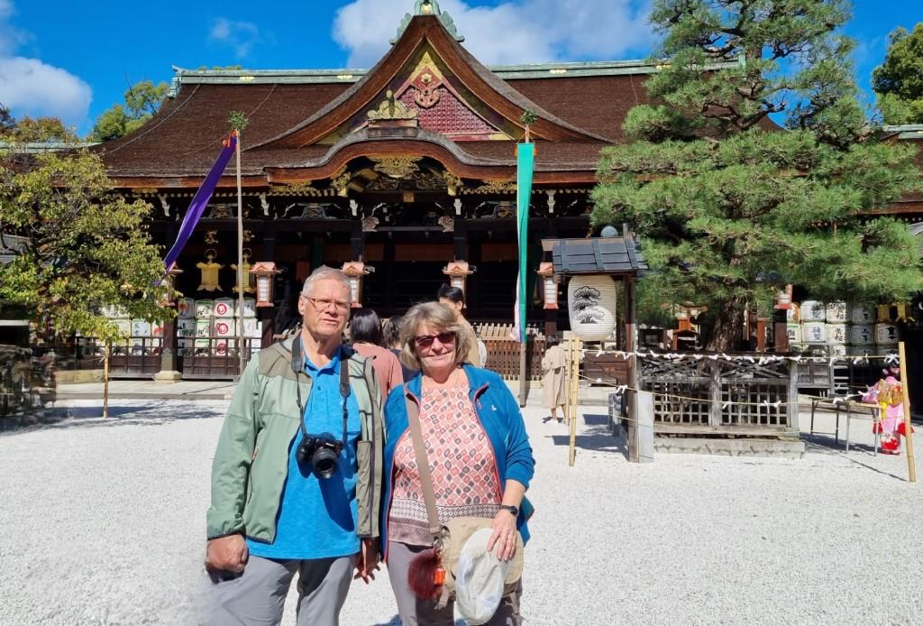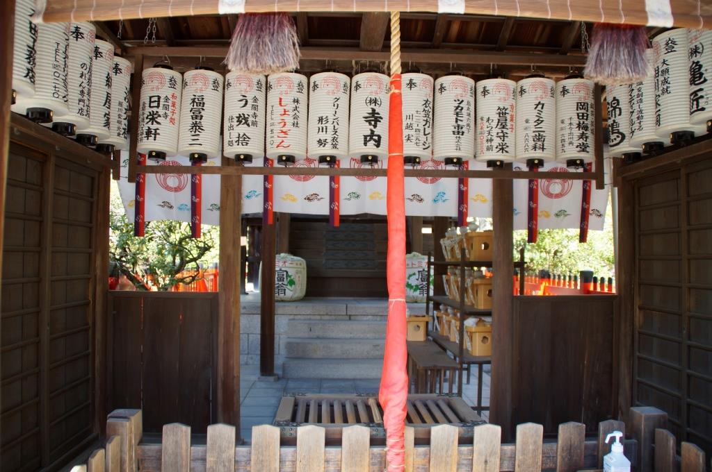 Nach dem Kinkakuji besuchten wir den Wara-Tenjingu Schrein nur ein paar Schritte vom Goldenen Tempel entfernt. Dieser Schrein wird aufgesucht um für eine gute und sichere Geburt zu beten sowie gutes Wachstum des Kindes. Da wir ja kurz vor unserer Japanreise einen Enkel erhielten, konnten wir an diesem Schrein etwas spenden und ein Amulett kaufen für die gute Gesundheit des Babys.