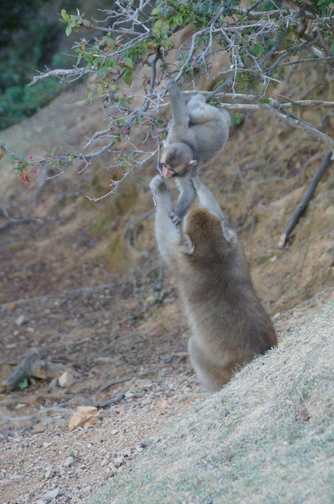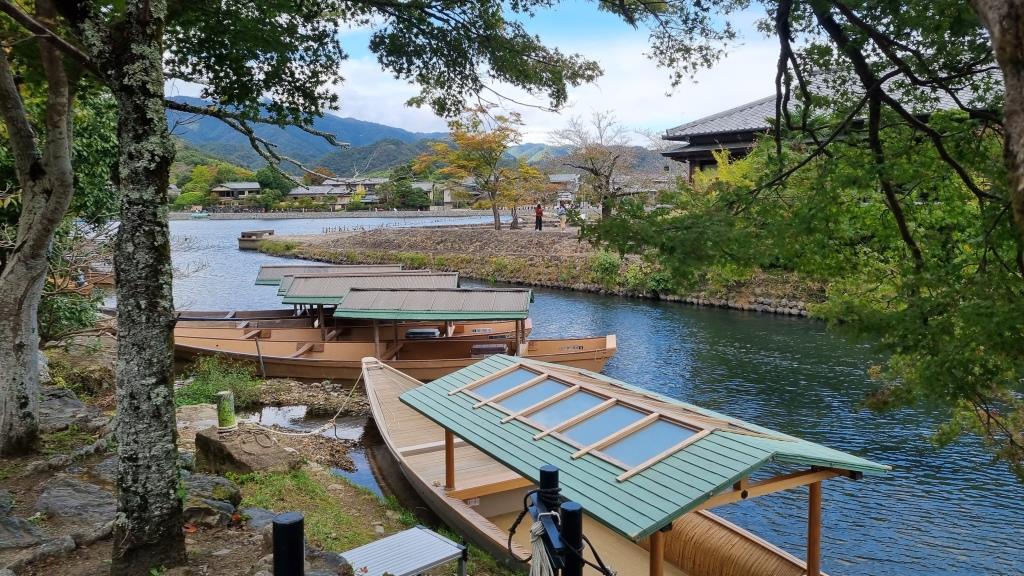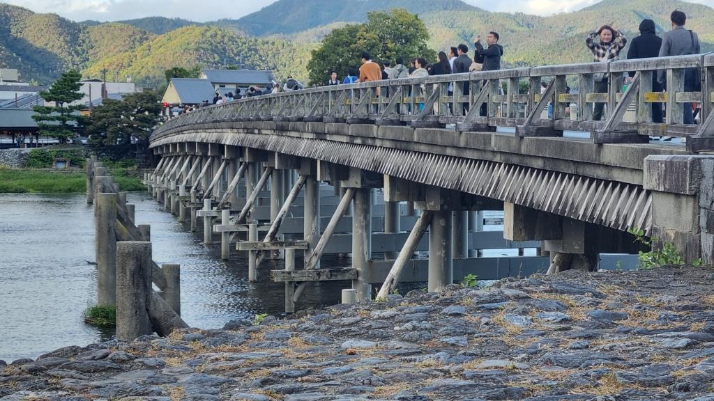 Danach zahlte man pro Teller seine Rechnung, rsp. unser Reiseleiter zahlte dies. Das Mittagessen war im Reisepreis inbegriffen. Frisch gestärkt fuhren wir mit dem Zug in etwa 50 Minuten nach Arashijama. Ein umtriebiges Viertel mit vielen kleinen Läden und Restaurants begrüsste uns. Wir liefen über eine schöne Holzbrücke zum Eingang des Affenparks. Hier liefen wir stetig bergauf bis zu einem Aussichtspunkt und vielen Affen.