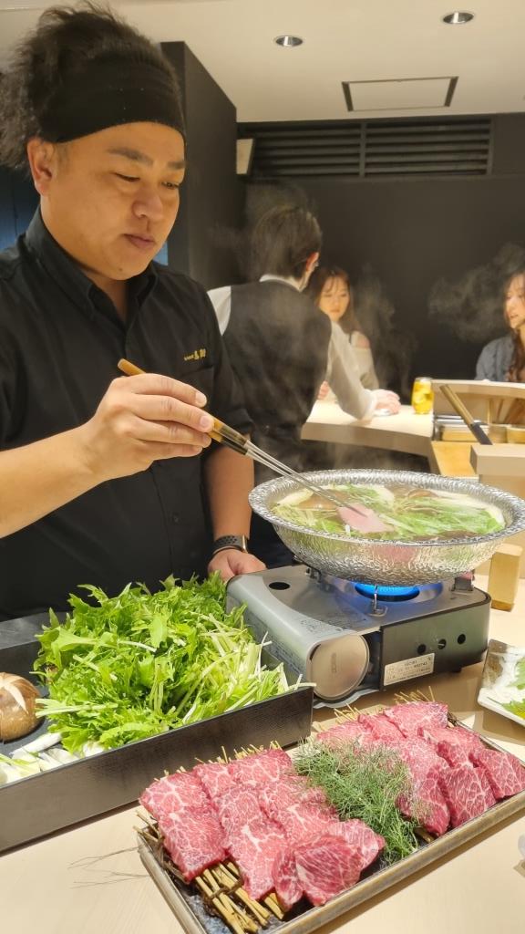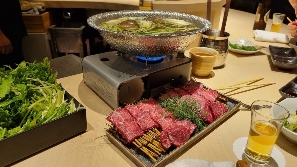 Mittlerweile war es schon gegen Abend und eine kleine Pause wäre nicht schlecht. Wir bekamen eine knappe Stunde und dann gings wieder weiter ins Zentrum zum Abendessen. Wir wollten heute Shabu-Shabu essen gehen, denn heute war jeder selber für das Abendessen zuständig. Der Reiseleiter führte uns zu einem Restaurant im unteren Stock und fragte nach ob es hier Shabu-Shabu gäbe und ob es noch Platz hatte. Wir hatten Glück und konnten uns mit einem sehr leckeren Shabu-Shabu den Bauch vollschlagen. Das Restaurant hatte nur Platz für 7 Personen und so konnten wir in kleiner, gediegener Atmosphäre essen. Der Kellner sprach kein Englisch aber auch er bediente sich dem Google Translater und so bekamen wir was wir gerne wollten, es war eine tolle Erfahrung und alles hat bestens geschmeckt. Das Restaurant hätten wir alleine vermutlich gar nicht erst gefunden.