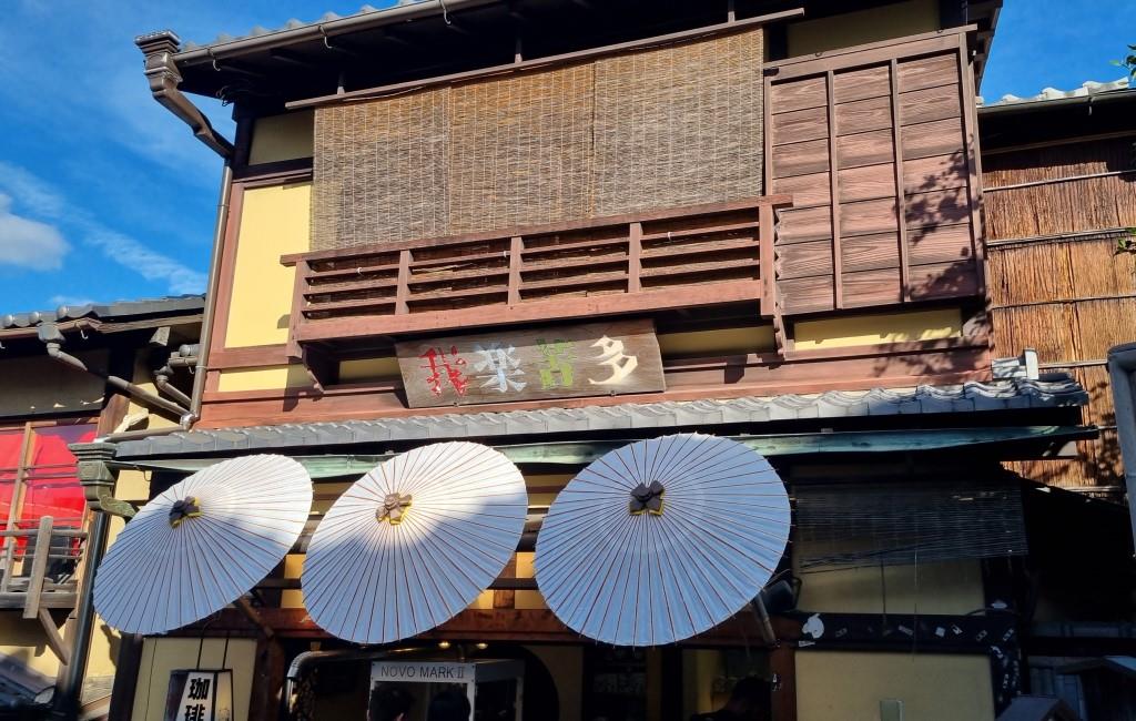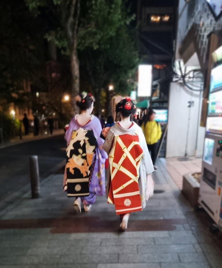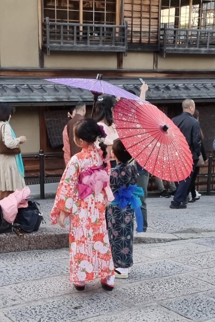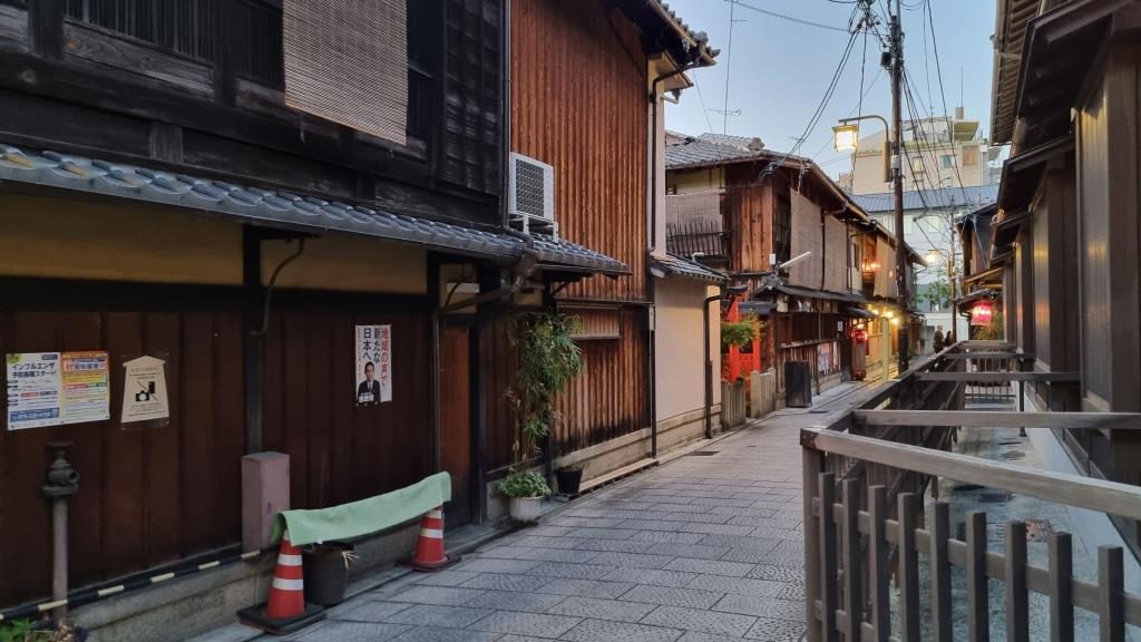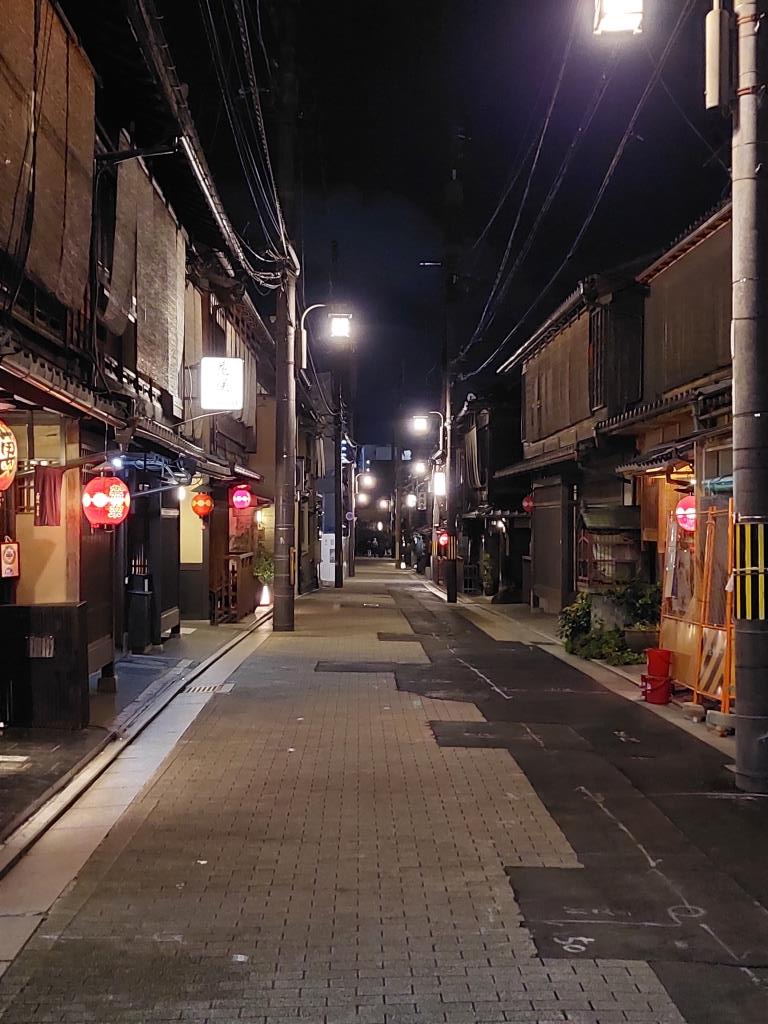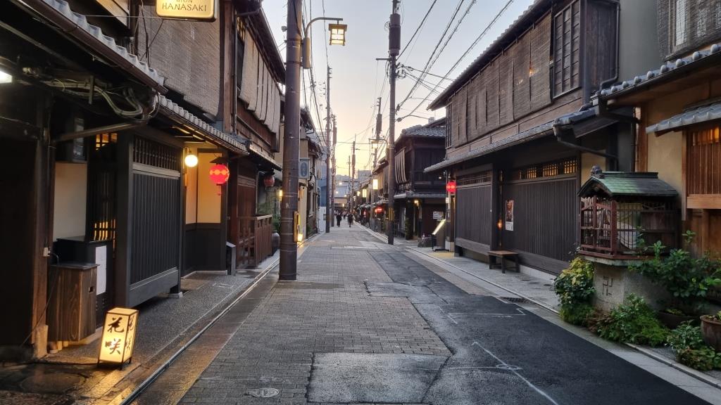Nach dem leckeren Essen schlenderten wir durch das Viertel Gion, sahen ab und an eine Maiko oder Geisha vorbeihuschen. Aber die waren so schnell, da konnte man nicht einmal das Handy aus der Tasche nehmen. Immerhin hatten wir so ein paar Wenige zu Gesicht bekommen. Die Gassen in Kyoto mit den alten Holzhäusern waren sehr schön anzusehen.