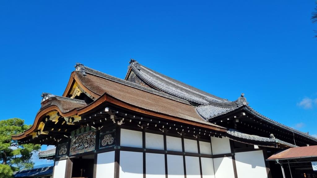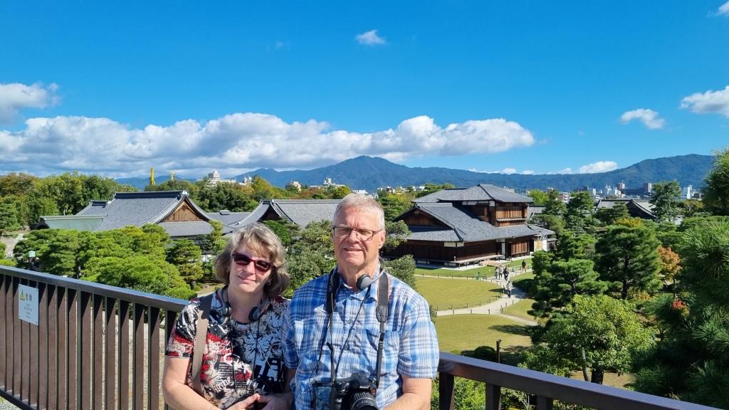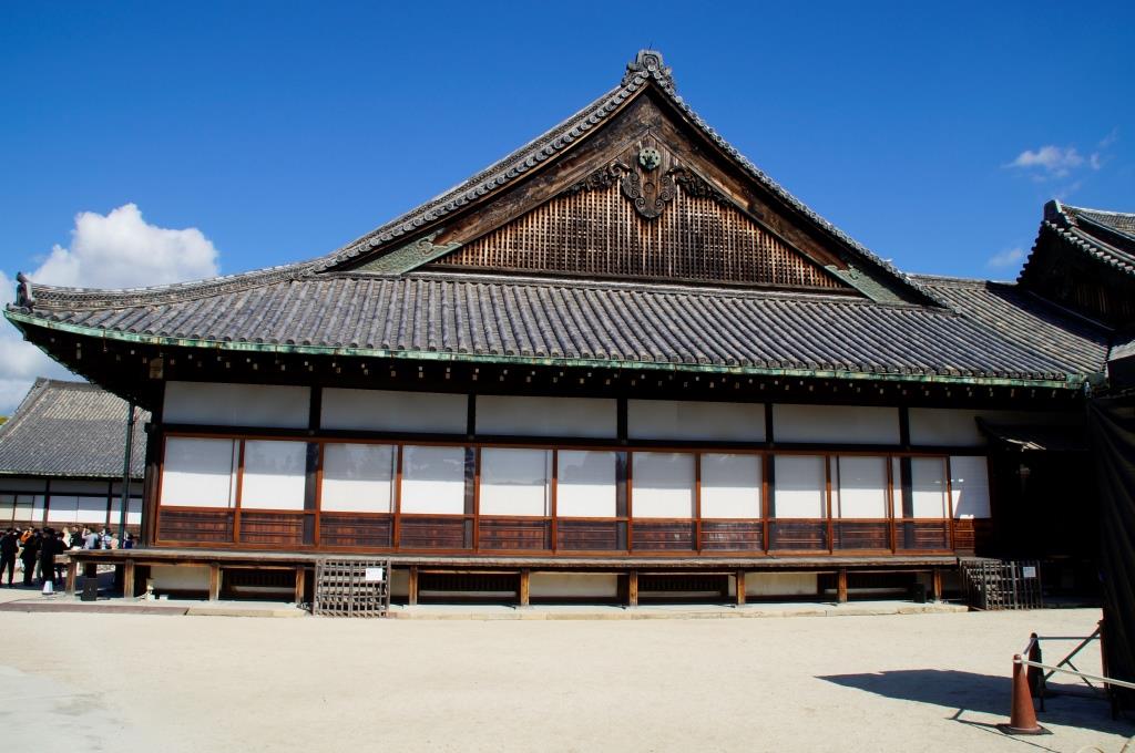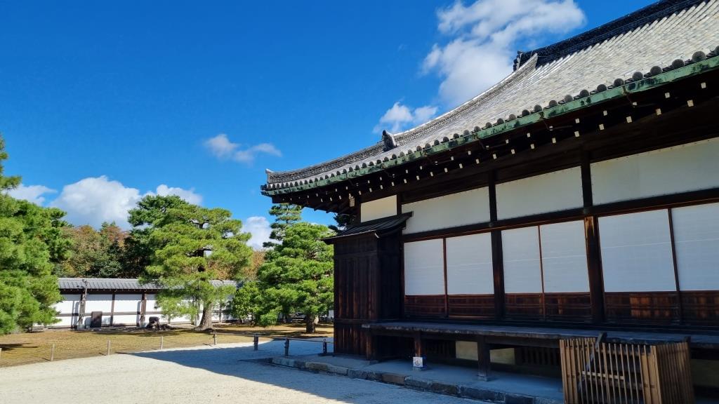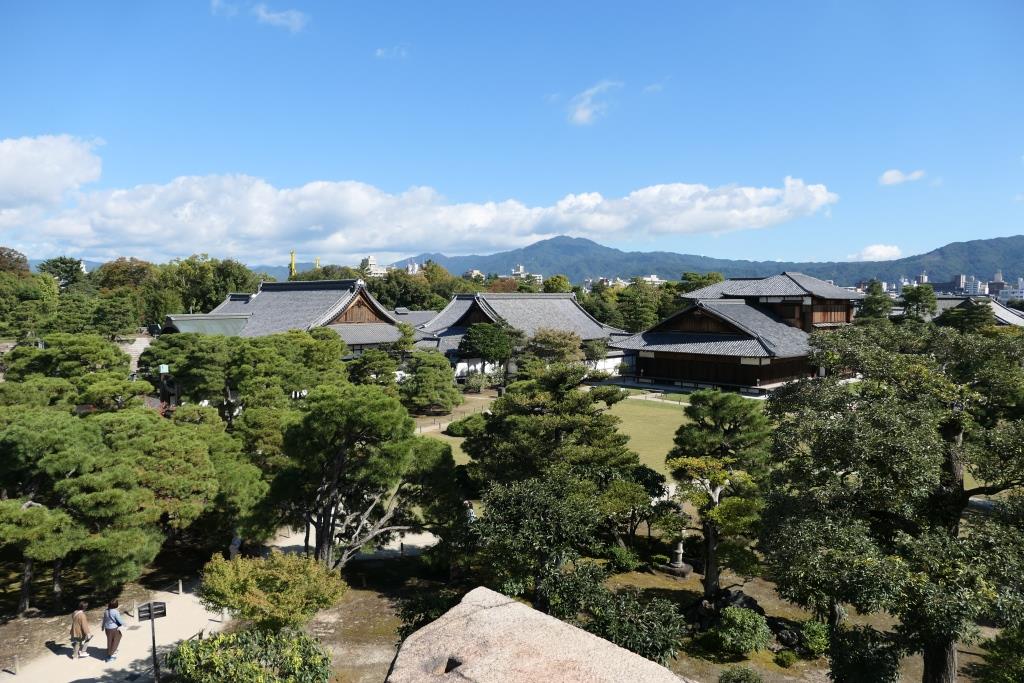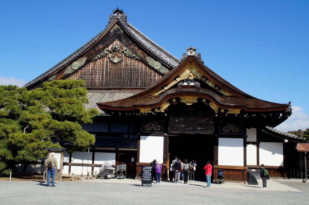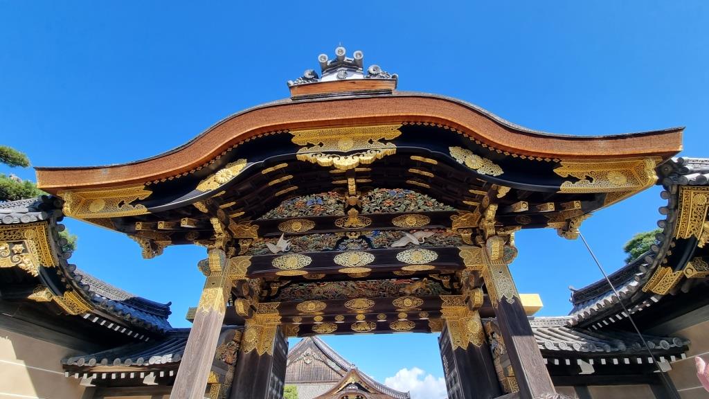 Am nächsten Morgen war wieder frühes Aufstehen angesagt. Nach dem Frühstück ging es mit dem Bus zur Burg Nijo. Da wir früh unterwegs waren mussten wir auch nicht anstehen für den Eintritt. Die Anlage ist riesig in einem sehr schönen Park verteilt. Zuerst ging es durch das wunderschöne, reich verzierte Eingangstor Karamon. Dann mussten wir für die Besichtigung des Ninomaru Schlosses die Schuhe ausziehen. Auf dem Rundgang kam man durch einige Räume die mit schönen Wandmalereien verziert waren und Tatami-Matten am Boden hatten. Möbel waren keine drinnen. Der Boden in den Gängen quitschte beim Betreten. Bei so vielen Touristen war dies ganz lustig anzuhören. Der sogenannte Nachtigallenboden warnte den Shogun vor allfälligen Eindringlingen. Im Innern durfte man leider keine Fotos machen, das wurde streng kontrolliert.