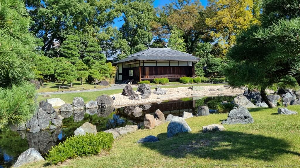 Man lief auf einem vorgegebenen Weg und sah somit den Pavillon von allen Seiten. Mit etwas Glück konnte man gute Fotos machen, ohne Menschenmassen. Der Park ist relativ klein, sodass man schnell durch war. Innen kann der Pavillon nicht besichtigt werden. Er ist wirklich schön und mit echtem Blattgold verziert. Die Lage an einem kleinen See und mitten im Grünen macht ihn zu einer der beliebtesten Sehenswürdigkeiten von Japan.