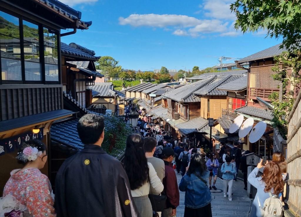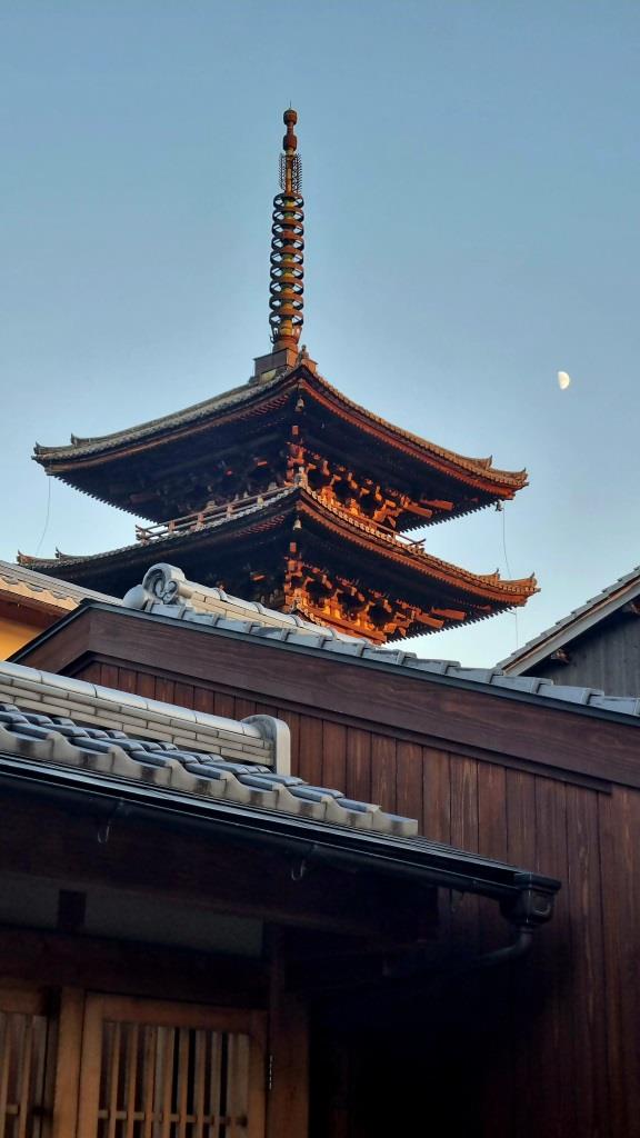 Wir liefen im Anschluss die Sannen Zaka mit einem haufen Touristen hinunter, kauften uns ein Machaeis bei einer Eisdiele und liefen dann weiter durchs Gion Viertel zurück. Dort nahmen wir wieder den Bus zum Hotel und gönnten uns eine Stunde Pause.