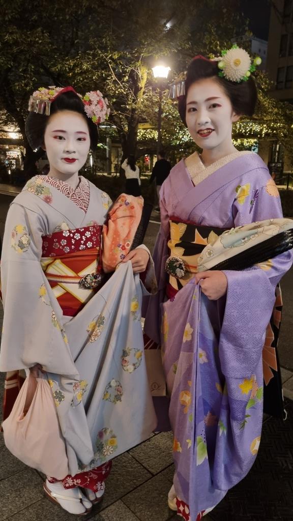 Gut gesättigt liefen wir durch das Gion Quartier und sahen doch wirklich zwei hübsche Maikos, die sich fotografieren liessen. Da fragte ich doch auch ob ich ein Foto machen dürfte und sie posierten für uns. Wirklich sehr nett die beiden.