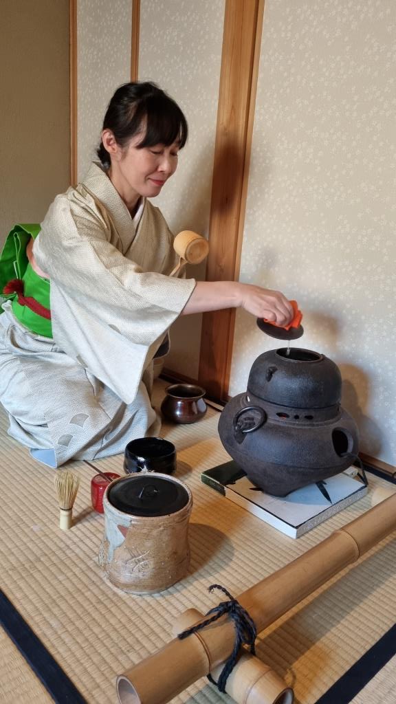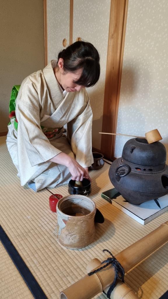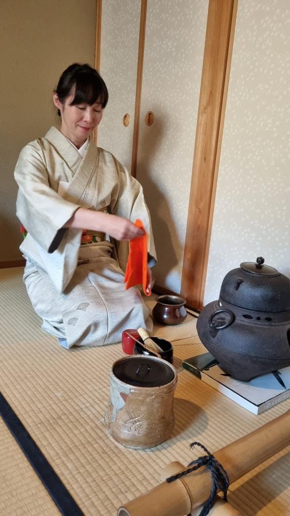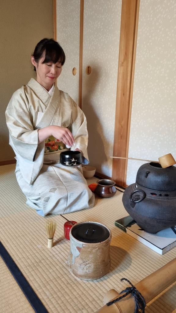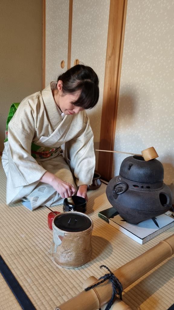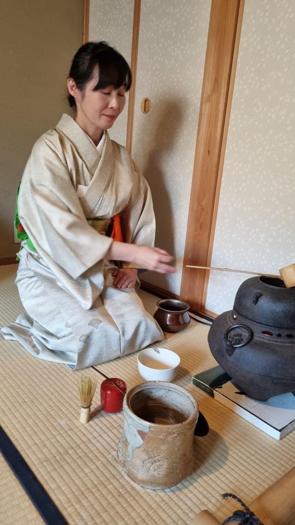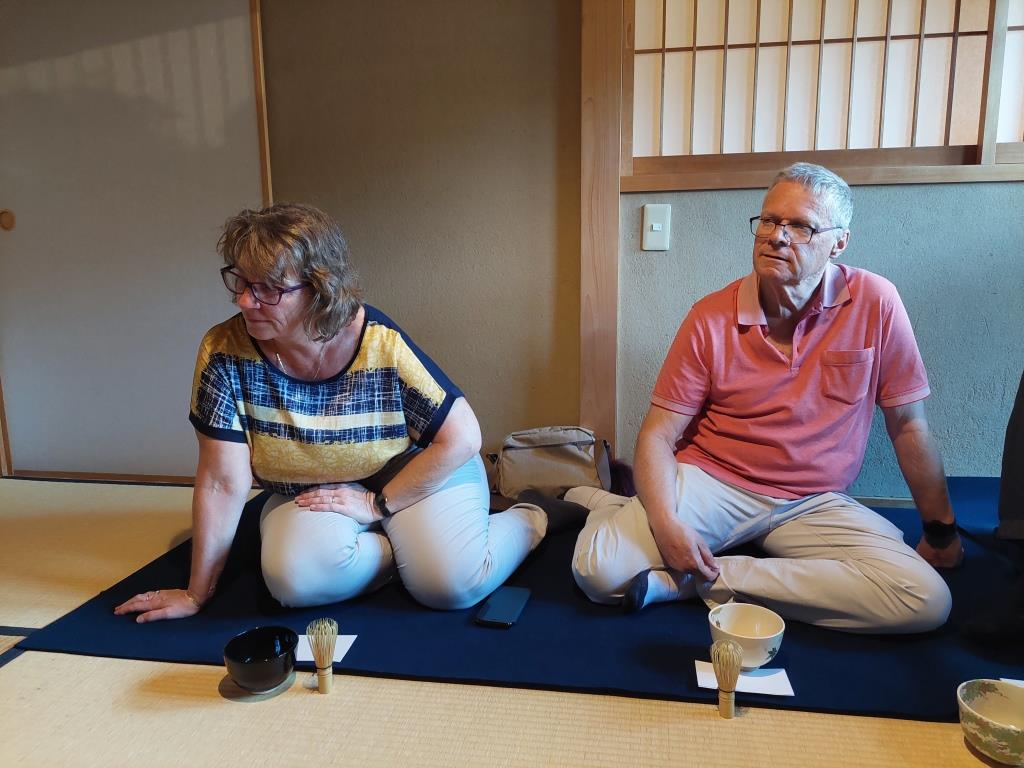 Mit dem Bus ging es nach Gion zur Teezeremonie. So eine Teezeremonie ist zwar spannend aber leider sass man wieder völlig unbequem am Boden. So konnte ich die ganze Zeremonie nicht geniessen. Ausserdem für mich als Nicht-Tee-Trinkerin unverständlich, dass man so lange braucht um einen Tee zu machen 😉 Aber ja, es ist eine Tradition, jeder Schritt ist einstudiert und dient zur Entspannung und zum Loslassen. In dieser Sitzposition ging Abschalten für mich nicht. Aber es war durchaus interessant so einer Zeremonie beizuwohnen. Zum Glück dauerte es für die Touris nicht so lange. Der Tee schmeckte trotz langem rühren mit dem speziellen Holzschwingbesen irgendwie nach Spinat. Aber das ist meine Meinung, andere fanden ihn sehr gut. Andi konnte die ganze Nacht dann nicht schlafen, der Tee peitscht einen so richtig auf, wäre eher für den Morgen gedacht und nicht für den Abend.