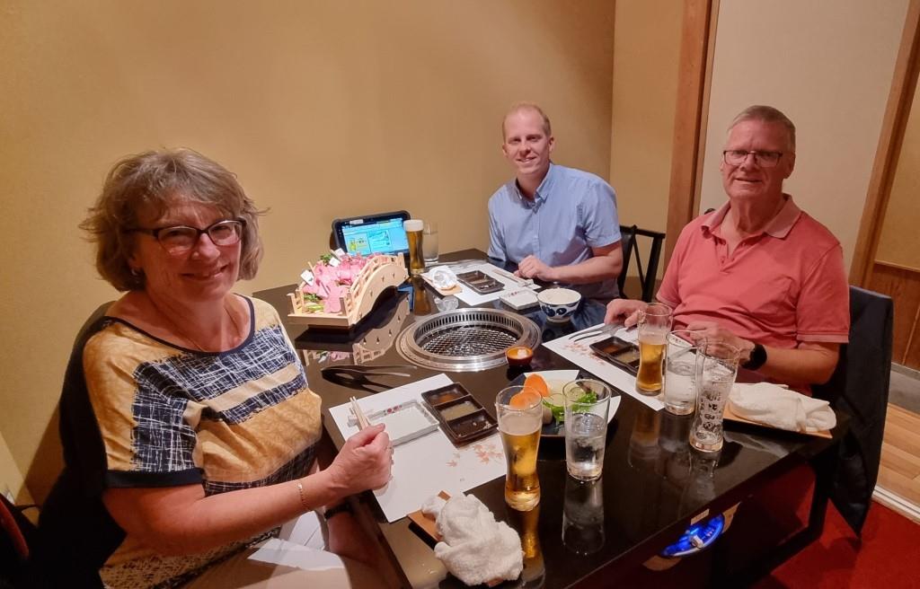 Nach der Teezeremonie spazierten wir noch bei der Hokanji Pagode vorbei, auch ein sehr schönes Fotomotiv und durch das Gion-Viertel, das am Abend nicht so belebt ist wie bei Tag. Eine richtige Geisha ist an uns vorbeigehuscht, leider konnte ich sie nicht fotografieren aber das wollen die auch nicht wirklich. War trotzdem ein schönes Erlebnis. Auch diesen Abend konnten wir alleine essen gehen und sind bei einem koranischen BBQ gelandet. Auf einem im Tisch eingelassenen Grill konnten wir Fleisch und Gemüse braten. Das war sehr lecker, wir waren auch alleine in einem Separée im oberen Stockwerk.