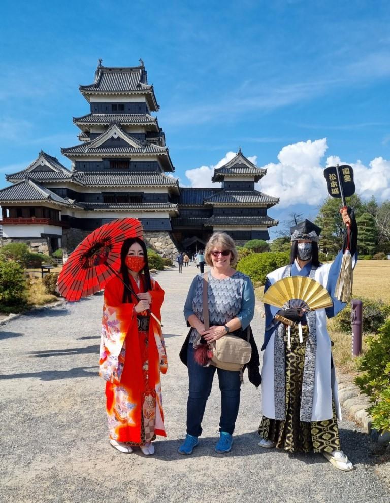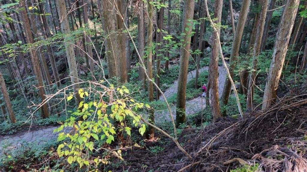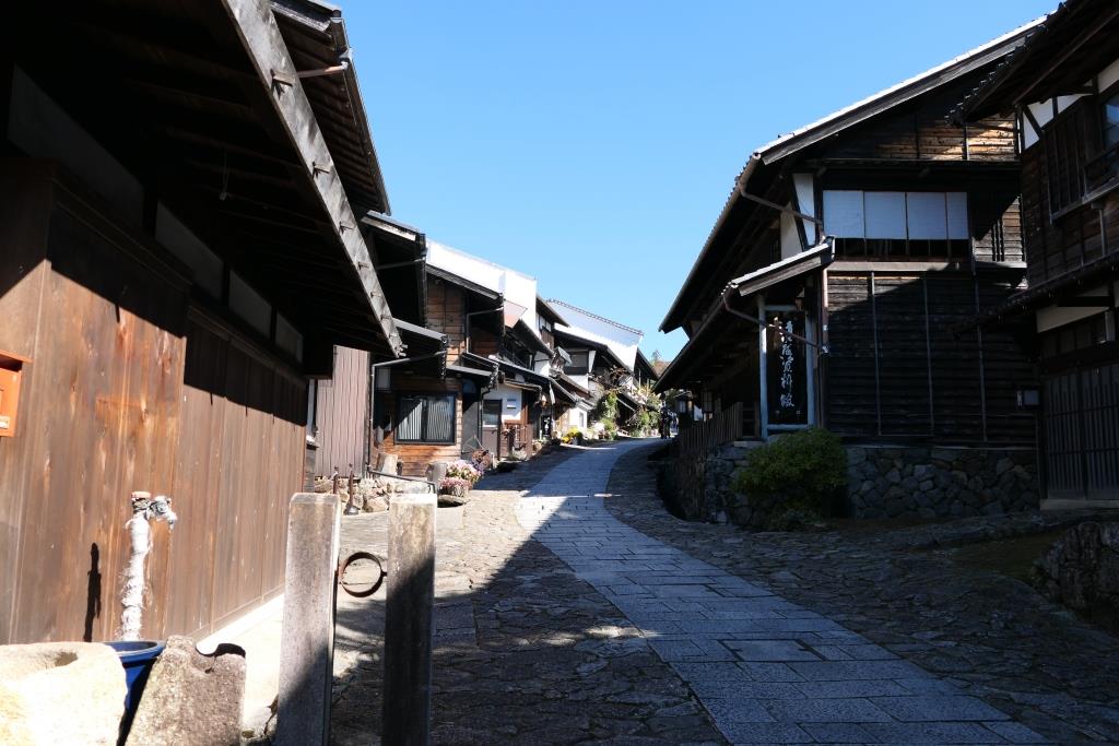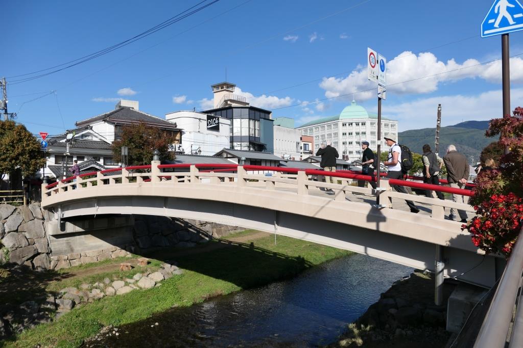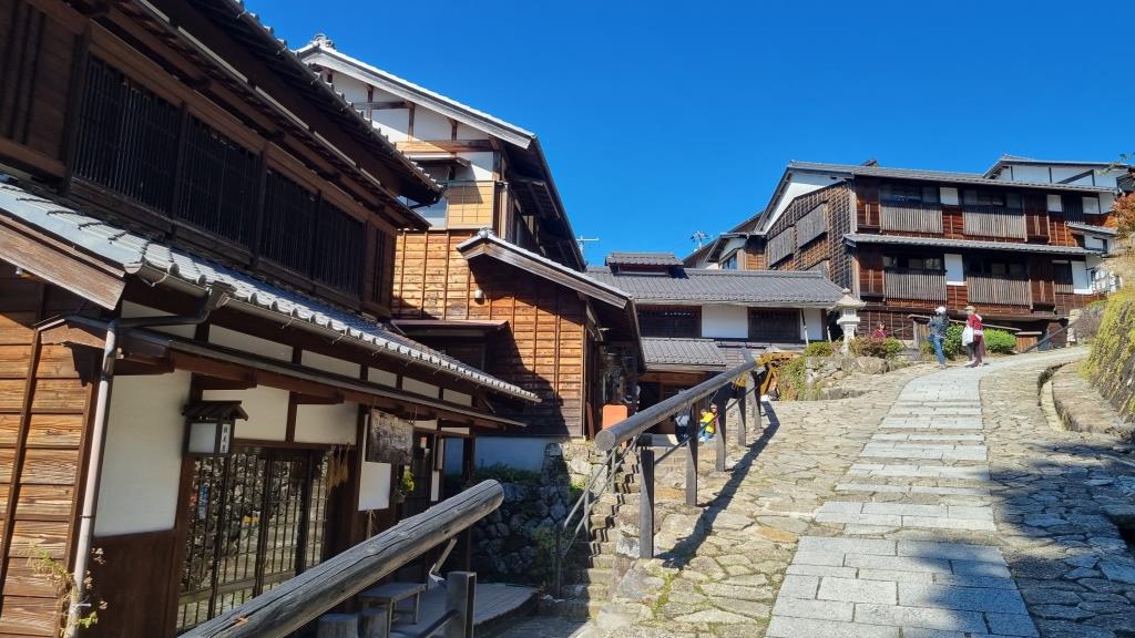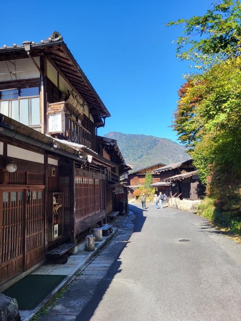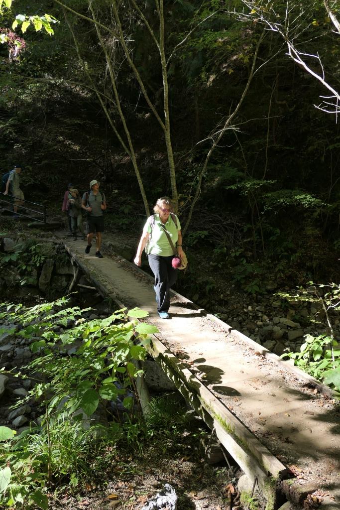 Eine sehr schöne Wanderung, die uns bestens gefiel. Bären hatten wir keinen zu Gesicht bekommen. Unterwegs hatte es Glocken die man schlagen konnte, um die Bären zu vertreiben. In Tsumago angekommen konnten wir eine kleine Pause machen, danach mussten wir den Bus nehmen nach Nagiso. Hier stellte sich heraus, dass der Bus zu wenig Platz hatte für all die Wanderer, die hier mitfahren wollten. Der Buschauffeur lies nur so viele Leute einsteigen wie Platz war, dann schloss er einfach die Türen zu und fuhr davon. Die Hälfte unserer Reisegruppe hatte es nicht geschafft einzusteigen. Gut war noch eine andere Reiseleiterin von einer anderen Gruppe vor Ort, die einen zweiten Bus organisierte und so kam der Rest mit etwas Verspätung auch am Bahnhof Nagiso an. Vor hier aus ging es dann mit dem Zug weiter nach Matsumoto.