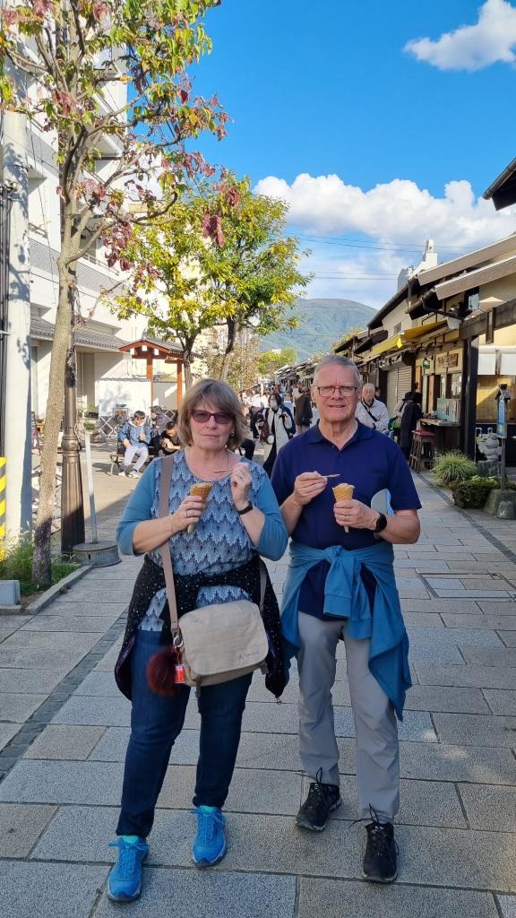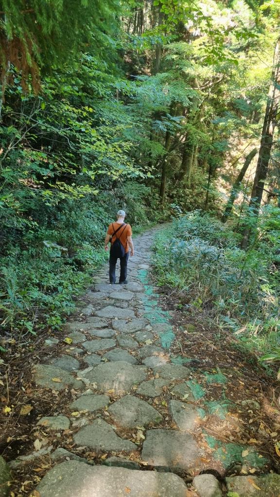 Von Kyoto fuhren wir frühmorgens los mit Zug und Bus nach Magome in die japanischen Alpen wozu wir etwa 3 Stunden unterwegs waren. Hier begann unsere Wanderung über den Magome Pass, die uns in 3 Stunden nach Tsumago bringen sollte. Gut hatten wir, wie auf der gesamte Reise, wieder herrliches, sonniges Wetter. Zuerst ging es bergauf durch das Dorf Magome, dann auf verschiedenen Wegen weiter aufwärts bis zum höchsten Punkt auf 790 m.ü.M. Danach ging es stetig bergab bis wir das Dorf Tsumago erreichten. Die Wanderung ist ein Stück (ca. 8 km) des alten Nakasendo Weges von Kyoto nach Tokyo.