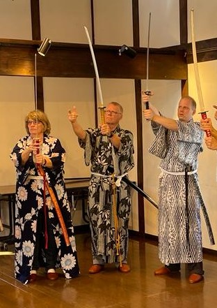 Nach der Besichtigung dieser eindrucksvollen Burg gab es zur Stärkung in einem Restaurant eine Nudelsuppe, die auch sehr fein schmeckte. Danach sind wir in eine Samuraischule und durften eine Lektion die Schwerter schwingen. Zuerst waren wir etwas skeptisch aber dann hatte es doch Spass gemacht und war ganz amüsant.