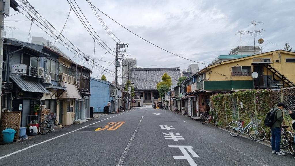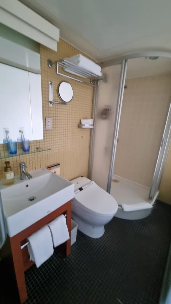 Am Nachmittag fuhren wir von Kamakura mit dem Zug in etwa einer Stunde nach Tokyo und mit der Metro ca. 20 Minuten bis Akasaka. Hier bezogen wir unser letztes Hotel der Rundreise. Das Zimmer war wieder im Schuhschachtelformat und das Bett hart wie ein Brett. Da war das Schlafen am Boden auf den Tatamimatten bequemer. Dafür gab es bei der Reception eine gute Kaffeemaschine und Mini-Donuts, wo man sich kostenlos bedienen konnte.