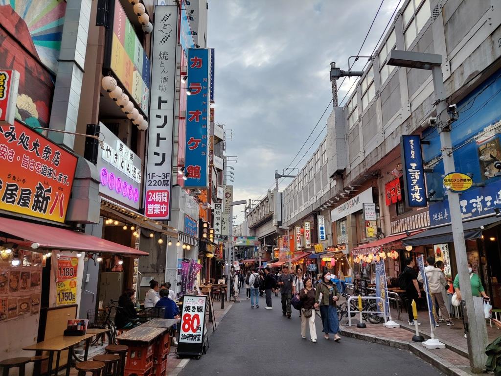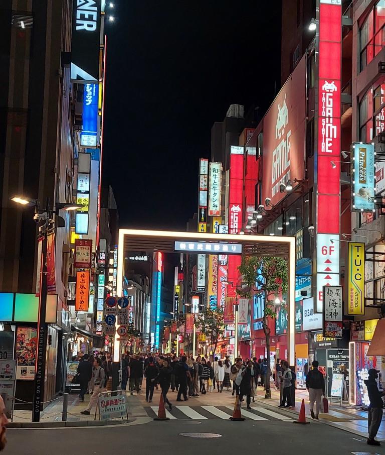 Die Leuchtreklamen und die vielen Menschen unterwegs waren der Wahnsinn. Man kam aus dem Staunen nicht mehr heraus. Wir betraten die Kabukicho Strasse und liessen uns durch die vielen Menschen treiben. Irgendwo kamen wir dann in die Golden Gai Gasse wo es kleine Häuschen hatte, enge Gänge und viele ganz kleine Bars wo nur wenige Personen Platz fanden. Wir konnten dann in so einer kleinen Bar einen Gin Tonic trinken, unser Sohn einen japanischen Whisky. Kaum zu glauben dass es solche Gegensätze im gleichen Quartier gibt. Danach fuhren wir mit der Metro zurück in unser Hotel und fielen müde in die harten Betten. Im Zimmer war es zudem sehr heiss, die Klimaanlage war schon vorbereitet zum Heizen für den Winter und das kleine Fenster konnte man nur spärlich öffnen, wie übrigens in ganz Japan.