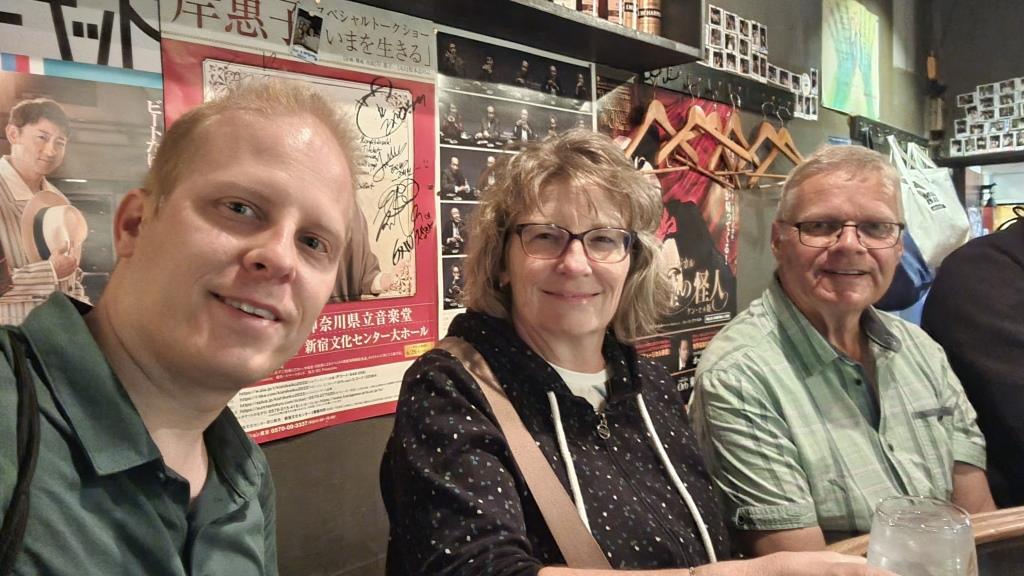 Nachdem wir fast 3 Stunden in der Schreinanlage verbracht hatten machte sich Hunger bemerkbar. Wir fuhren dann mit dem Bus in ein weiter entferntes Onsen und konnten dort eine Ramensuppe essen, die doch ganz lecker war. Jedoch hatte niemand aus der Gruppe jetzt Lust auf Onsen. Und nun sassen wir da in der Pampa und mussten eine Stunde auf den Bus warten, der uns zurück nach Nikko brachte. Mit dem Resultat, dass dort alle Cafés schon geschlossen hatten und auch die Läden dicht machten. Wir hätten lieber noch eine Stunde in Nikko verbracht anstatt in den Onsen aber das war ein Kommunikationsfehler unseres Guides, der uns nicht vorab informierte oder fragte, was wir denn noch machen wollten. Wir mussten dann noch etwas auf den Zug warten, die Plätze waren ja reserviert auf eine bestimmte Uhrzeit. So kamen wir am späteren Abend in Tokyo an. Gut hatten wir noch eine Suppe in Nikko denn die Restaurants in Japan schliessen schon früh am Abend, nach 21:00 Uhr wird es schon schwierig noch was zum Essen zu finden. Also probierten wir es in einem italienischen Restaurant am Bahnhof Akasaka und wir bekamen noch knapp einen Apérol und ein paar Bruschettas. Immerhin. Müde von dem langen Ausflugstag sind wir ins Hotel und versuchten es mit Schlafen.