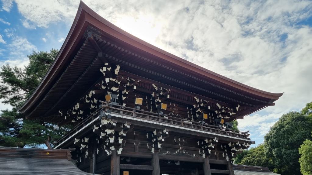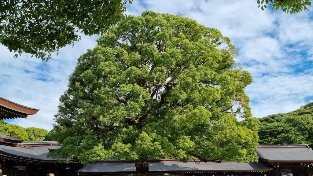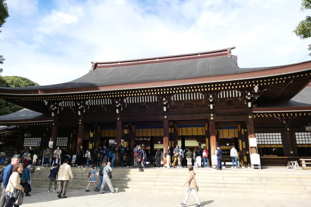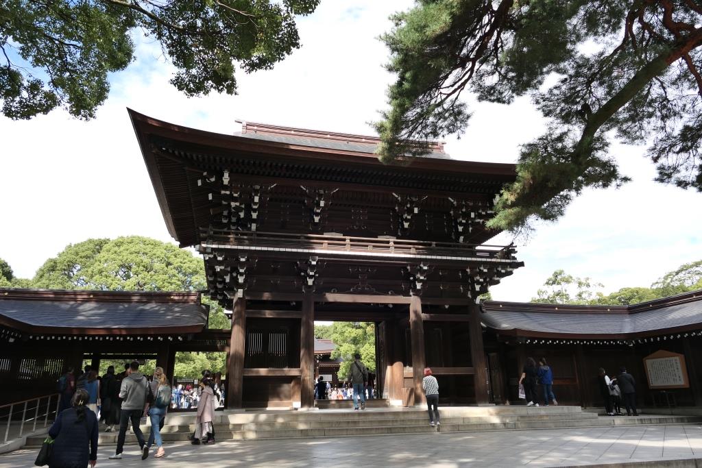 Bei klarem Wetter hätte man sogar den Mount Fuji sehen können. Leider versteckte sich dieser wieder hinter den Wolken. Nachdem wir alles rundherum begutachten konnten und viele Bilder geschossen hatten ging es weiter zum Meiji-Schrein.