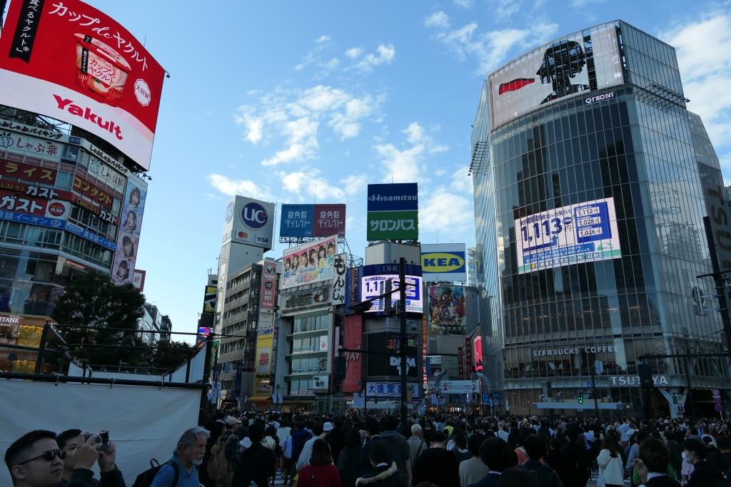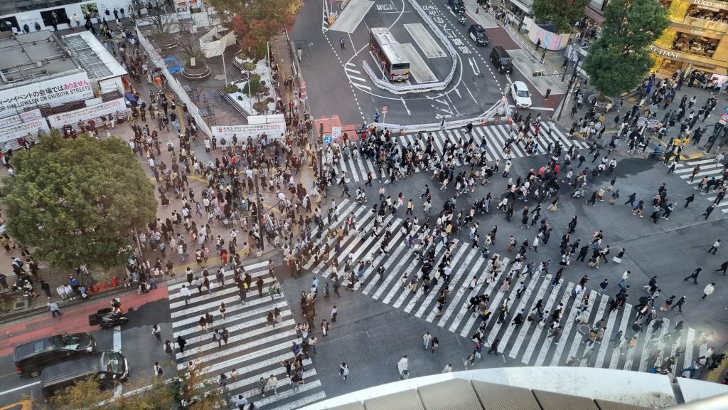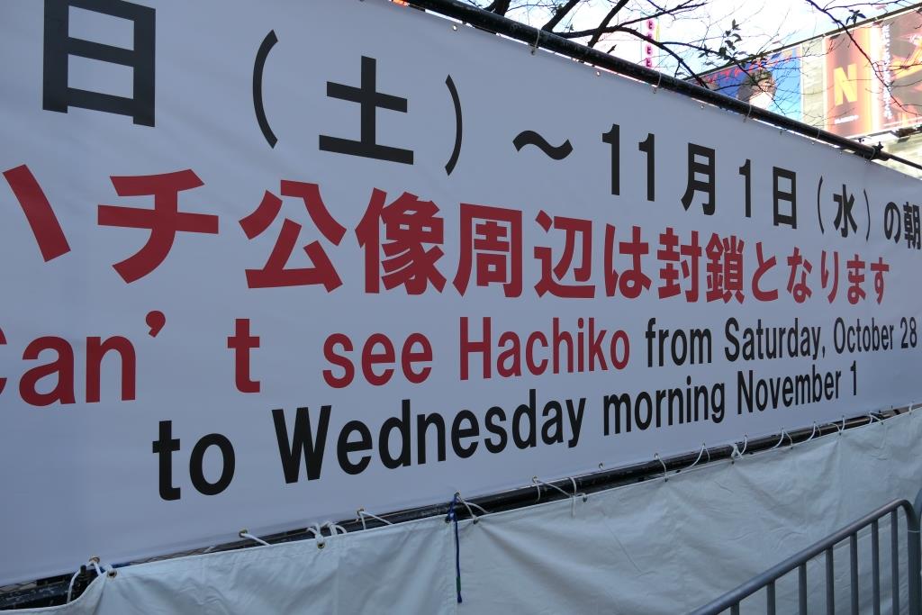 Es war Sonntag und dementsprechend waren viele Menschen im Park und beim Schrein. Es fanden mehrere Hochzeiten in traditionellen Gewändern statt, was sehr interessant war. Der Meiji Schrein befindet sich in einem grossen Wald mitten im Herzen von Tokyo. Danach ging es wieder ins trubelige Zentrum. Ein Kinderumzug zu Halloween fand gerade statt als wir Richtung Shibuya liefen. Unterwegs assen wir einen Hamburger und dann wollten wir uns in Shibuya den Hachiko ansehen und die berühmte Kreuzung. Dann die Enttäuschung: wegen Halloween hatten sie die Statue vom Hund Hachiko verbarrikadiert, sodass man diese gar nicht sehen konnte. Schade. Wir liefen mit hunderten Menschen über die Shibuya-Kreuzung und sahen uns die Kreuzung von der Terrasse des Kaufhauses Magnet an. Gegen eine Eintrittsgebühr erhielt man ein Getränk und konnte die Aussicht auf der Terrasse mit Blick auf die Kreuzung geniessen. Leider wieder nur durch Scheiben und die Sonne brennte gnadenlos genau auf die Scheiben.