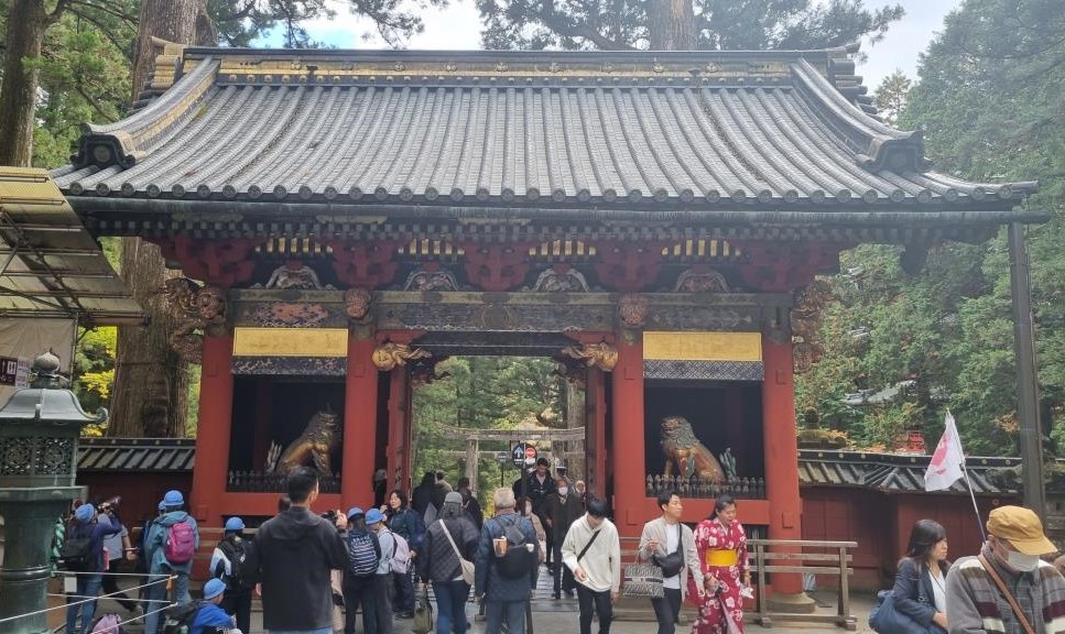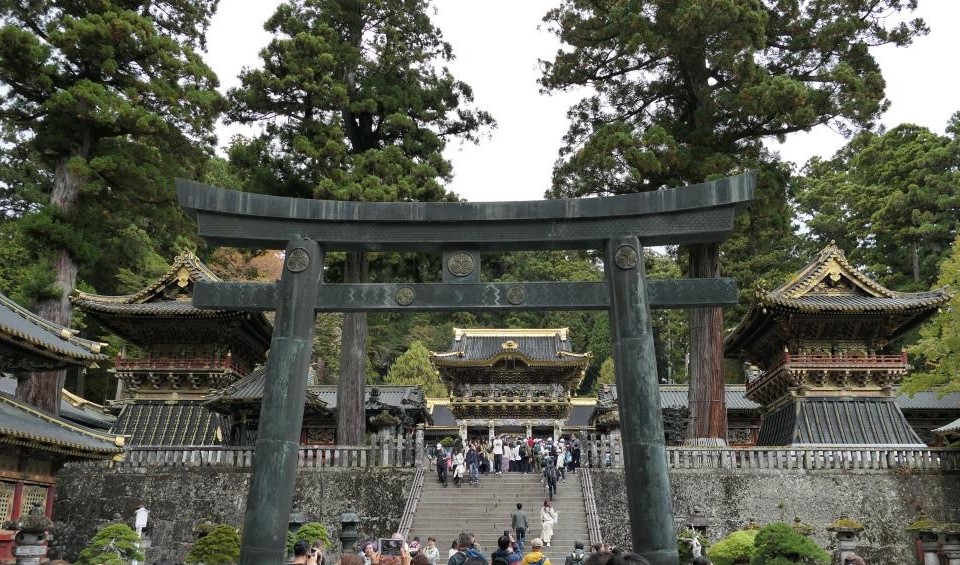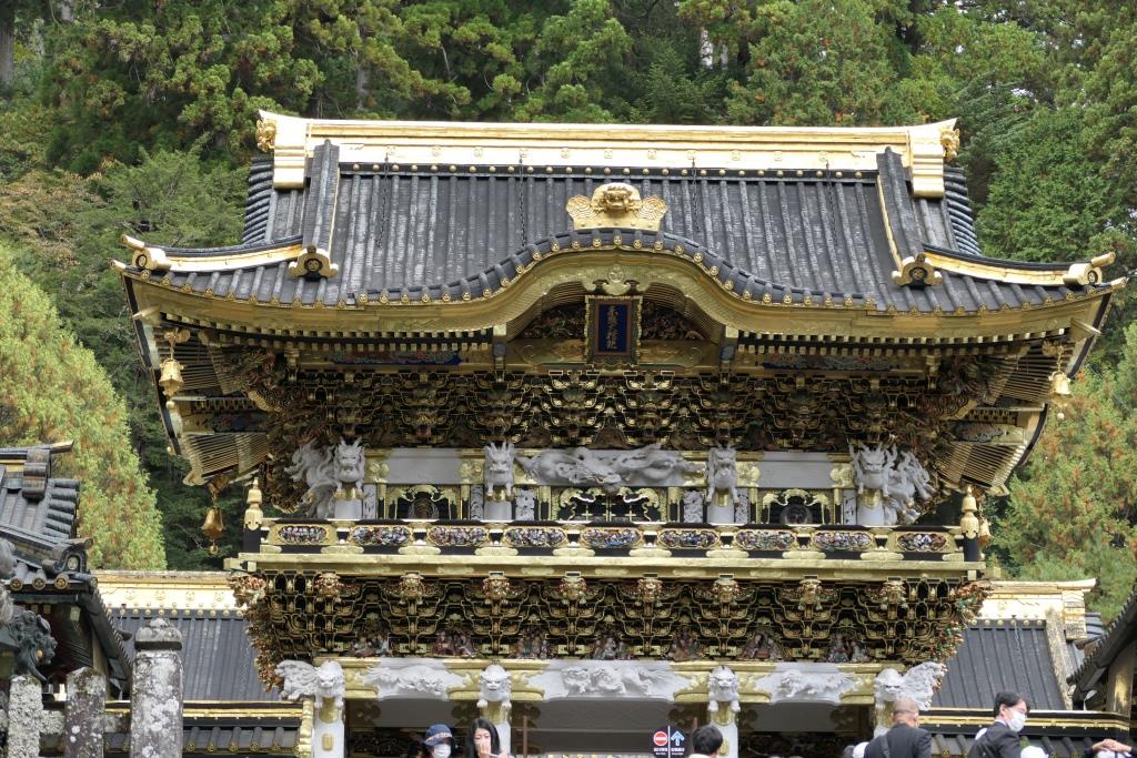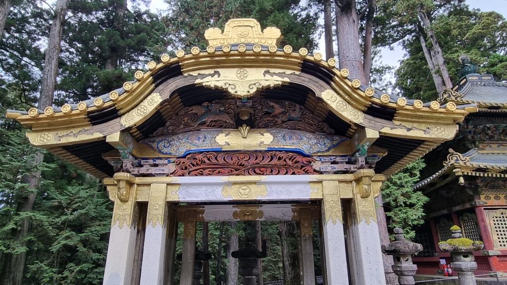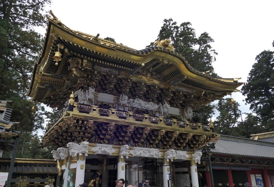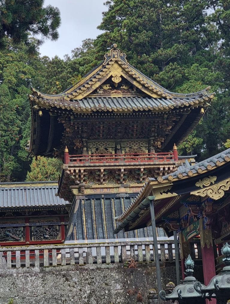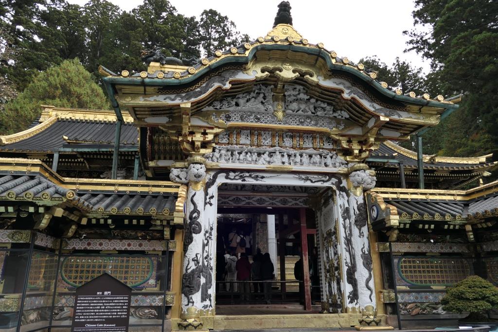 Wir sind bis zum Mausoleum des Gründers des Tokugawa Shogunats hinaufgelaufen, bei der schlafenden Katze vorbei und dann kamen wir zum Toshogu Schrein, bei dem schon das Yomeimon Tor mit Gold und Verzierungen so reich bestückt war, dass wir aus dem Staunen gar nicht mehr raus kamen.
