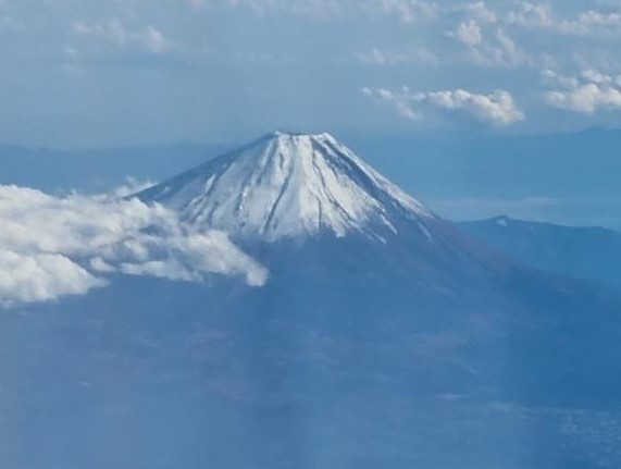 Am Morgen ging es mit einem Taxi zum Bahnhof Hamamatsucho und von dort mit Koffer und Gepäck mit der megavollen Monorail zum Flughafen Haneda. Kurz nach dem Start winkte uns zum Abschied der wolkenlose Mount Fuji. Sayonara.