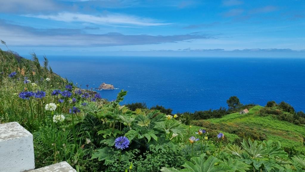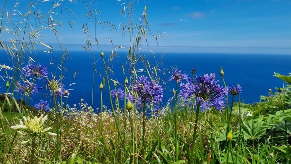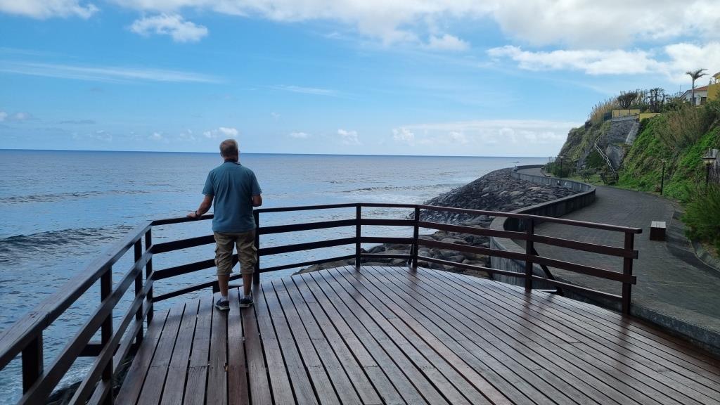 Am nächsten Morgen, nach einem enttäuschenden Frühstück, machen wir uns auf den Weg, den Norden zu erkunden. Zuerst machen wir zu Fuss eine kleine Runde durch das Dorf Boaventura. Dann fahren wir mit dem Auto zum Aussichtspunkt Bom Jesus auf der alten, gesperrten Strasse mit herrlichem Blick auf Ponta Delgada.