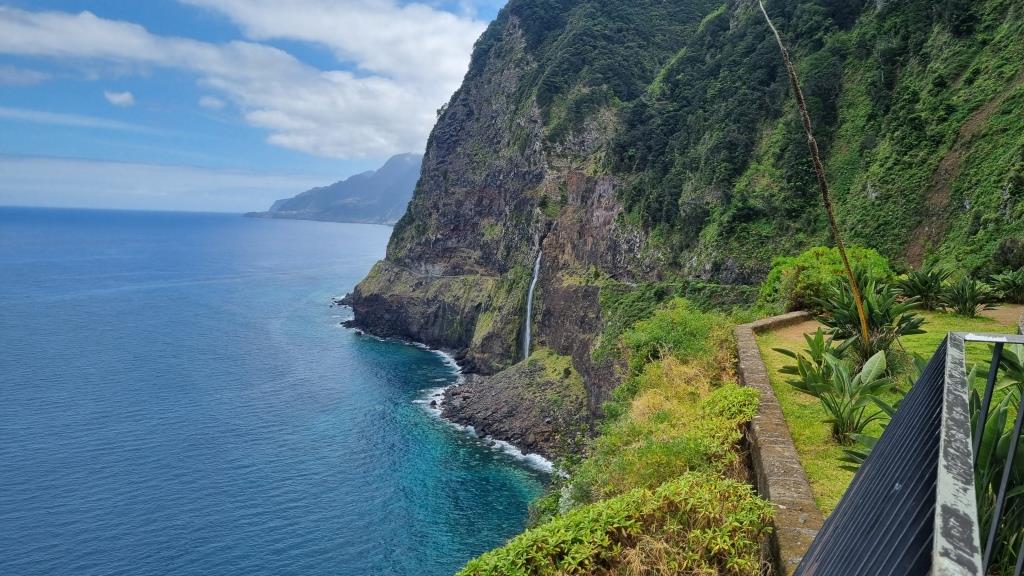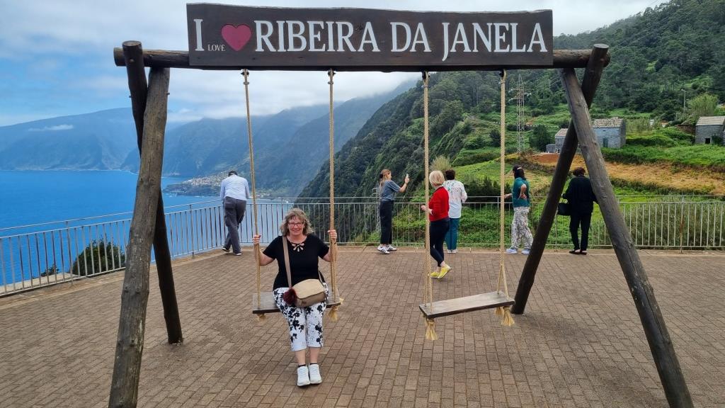 Danach fahren wir eine steile, Serpentinenstrasse hinauf zum Ort Ribeira da Janela. Auch hier hat es einen spektakulären Aussichtspunkt mit einer Schaukel, den wollen wir uns ansehen.