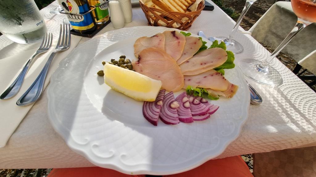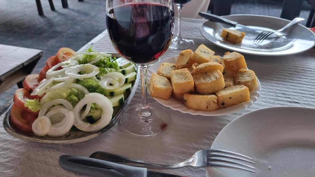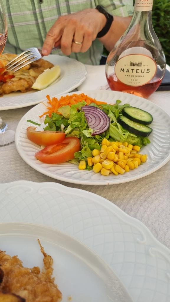 Auch diesen Abend essen wir im Hotel, dazu reservieren wir uns wieder das hübsche Tischchen im Garten. Das Abendessen ist ganz gut im Gegensatz zum Frühstück. Trotzdem werden wir morgen auswärts essen gehen.