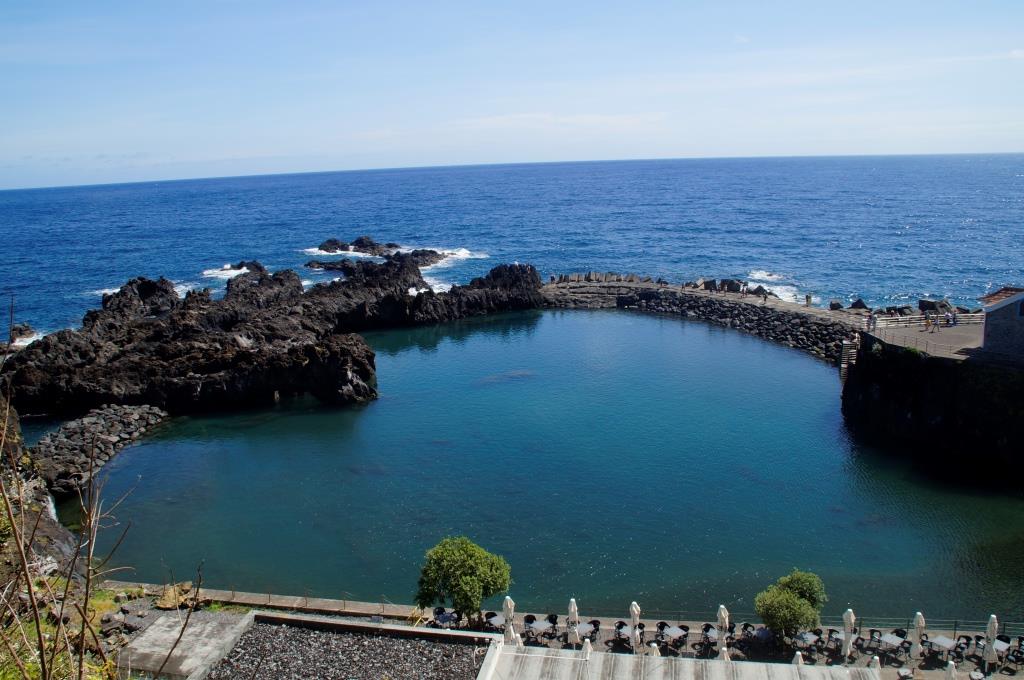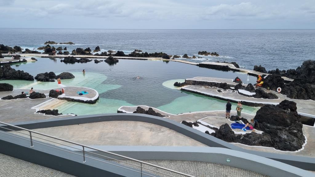 Schon bei der Anfahrt sehen wir, dass Porto Moniz ganz anders aussieht. Eine grosse Parkplatzanlage, das riesige neue Meerwasserschwimmbad, viele Restaurants, der grosse Platz am Meer, ein Meeresmuseum, alles neu. Das alte Meerwasser-Lava-Becken besteht noch, ist aber, glaube ich, nicht mehr so gefragt. Auch hier wurde ein Restaurant und ein Museum auf die Felsen gesetzt. Alles ist sehr touristisch geworden. Kein Wunder, mit den neuen Tunnels ist Porto Moniz auch viel einfacher zu erreichen als 1987. Hier hat sich wirklich sehr viel verändert.