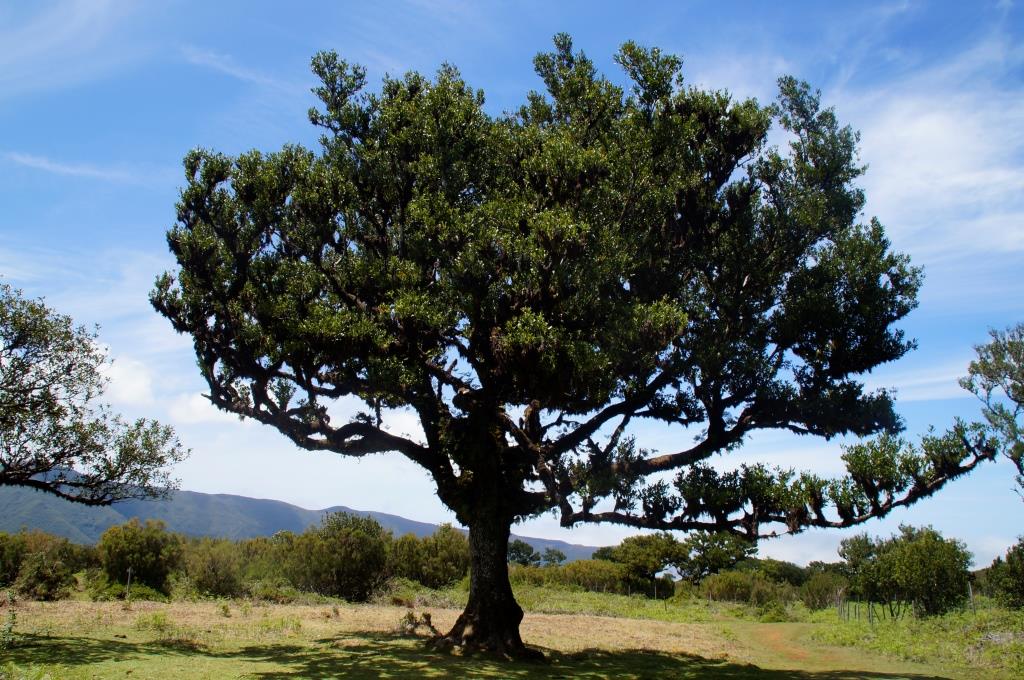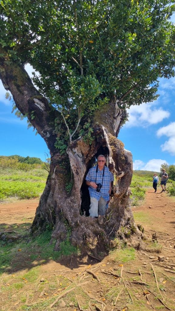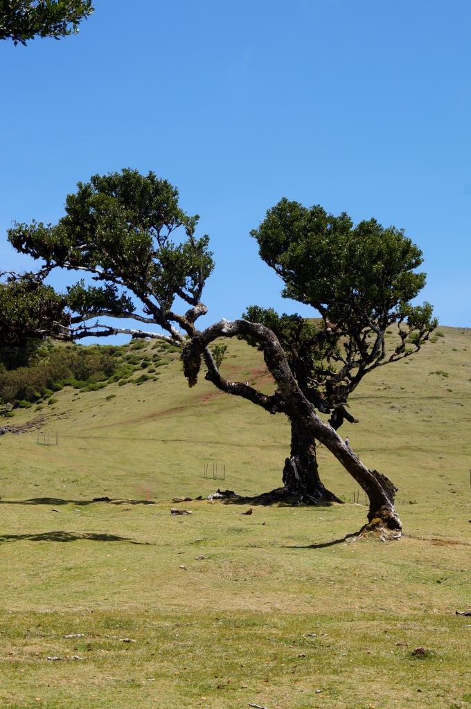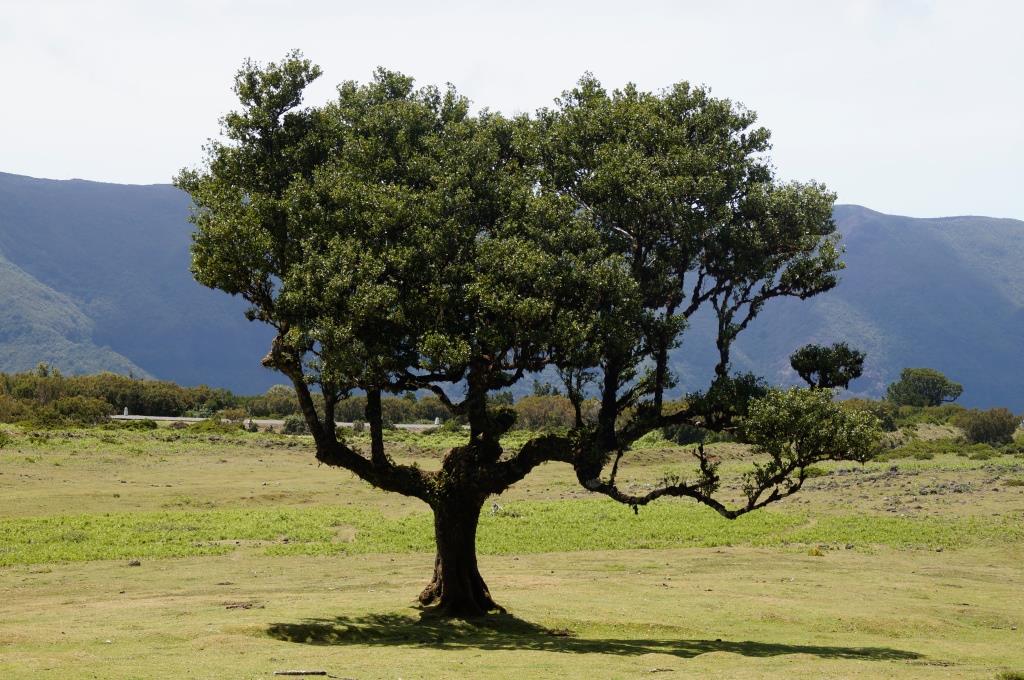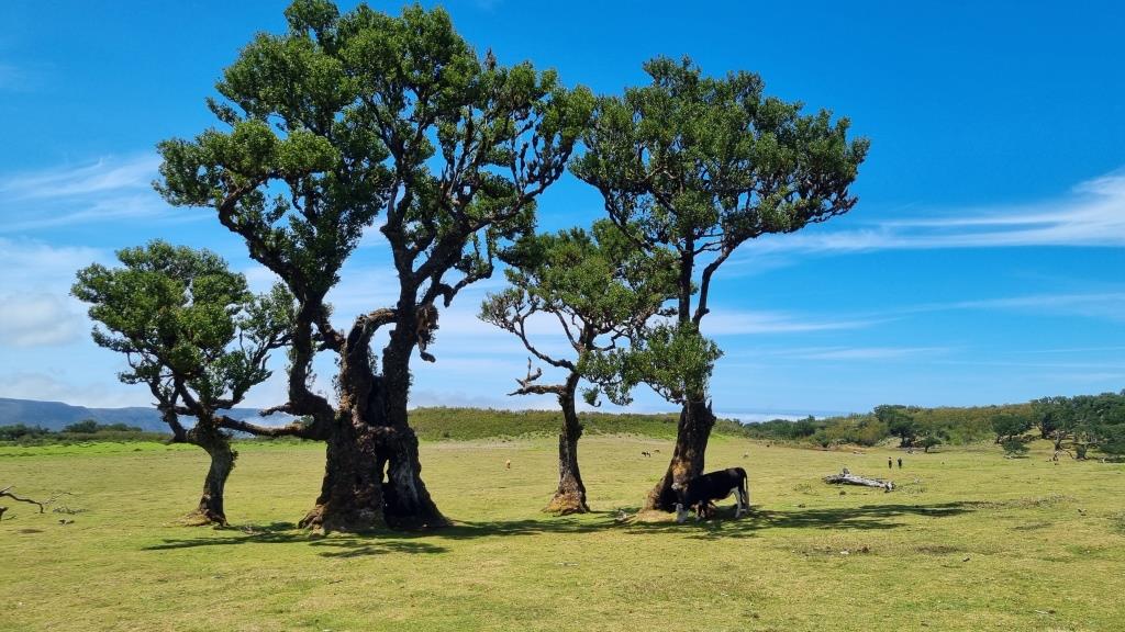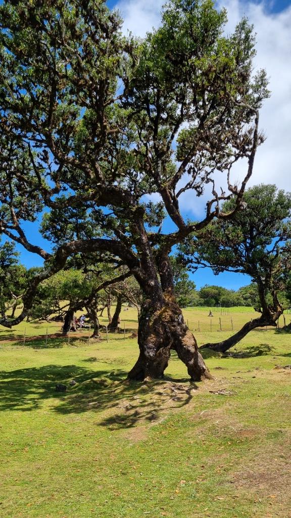 Das blaue Meer und die grüne, bergige Landschaft sehen schon toll aus. Weiter fahren wir zum Faialwald, einen Feenwald auf einer Hochebene. Wir sind gespannt. Es ist ein herrlicher, sonniger Tag, der Parkplatz beim Feenwald hat zum Glück noch genug Plätze frei. Wir spazieren einen Rundweg, vorbei an den bizarr anmutenden Lorbeerbäumen. Manche Bäume sehen aus wie knorrige Fabelfiguren mit Armen. Mit Nebel bestimmt noch eindrücklicher aber bei Sonnenschein natürlich auch sehr schön.