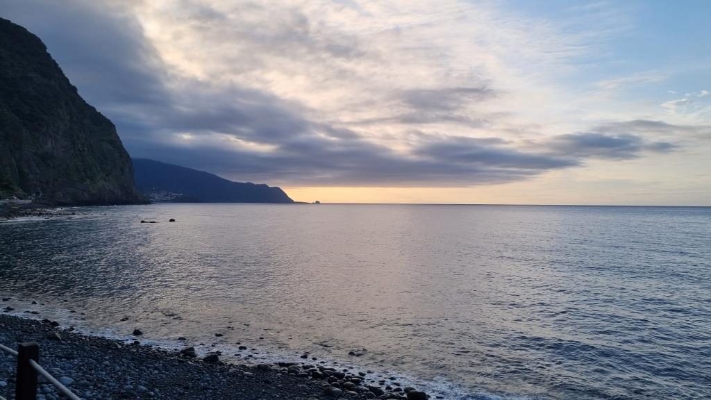 Nach dem Essen spazieren wir noch in São Vicente am Meer entlang und sehen uns die Abendstimmung an. Satt und zufrieden fahren wir zurück nach Boaventura zum Hotel. Hier gibt es noch einen Schlummerbecher im Garten und dann geht es ab ins Bett.