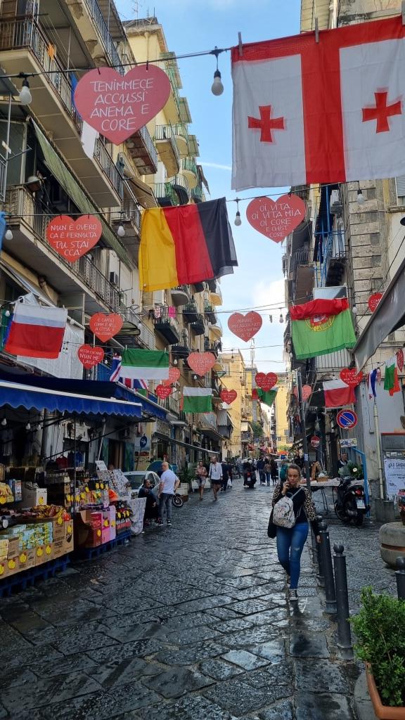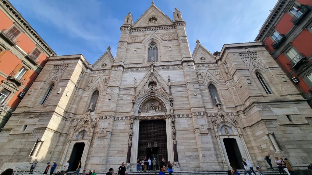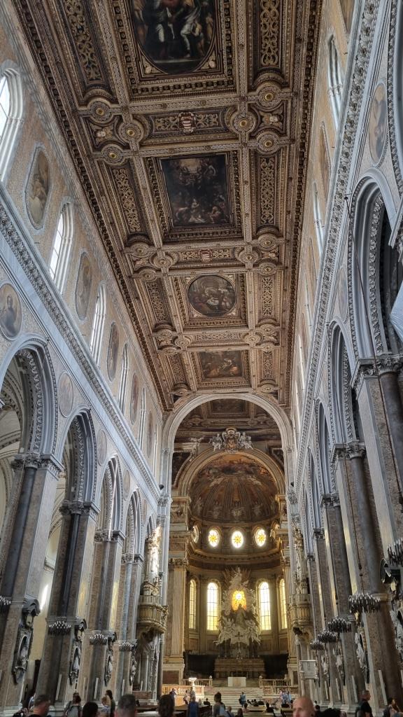 Der Bahnhofplatz, Piazza Garibaldi, ist riesig und modern. Die Gassen in die Altstadt sind eng, speziell, überall hängen Wimpel und Maradonna wird an jeder Ecke verehrt. Wir spazieren zum Dom und sehen uns dieses imposante Bauwerk auch von innen an.