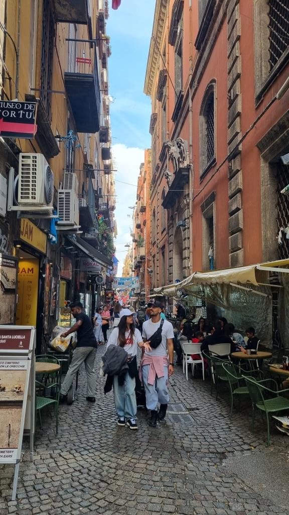 Neapel hat uns sehr gut gefallen. Wir hatten jetzt nie Angst oder das Gefühl es sei gefährlich. Wie es Abends aussieht können wir nicht sagen, die paar Schritte zum Bahnhof waren easy. In den Aussenquartieren sieht es dann vielleicht anders aus. Entspannter ist sicher die Fahrt mit der Reisegruppe im Bus aber die waren nicht so lange in der Stadt und das Castel Sant’Elmo haben sie nicht besucht und teurer war der Ausflug dann auch.