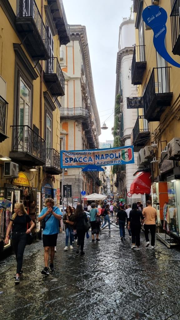 Nachdem wir auf unserer Reise Amalfiküste 2024 Sorrent, Ischia, Capri und die Amalfiküste erkundet haben, ist nun ein Besuch der Stadt Neapel fällig. Wir waren schon einmal mit einem Kreuzfahrtschiff in Neapel 2007. Haben damals aber nur einen Ausflug nach Pompeji gemacht und nicht viel von der Stadt gesehen. Wir möchten heute soviel wie möglich sehen. Deshalb fahren wir alleine nach Neapel und nicht mit der Reisegruppe. Auch wir starten nach dem Frühstück und fahren vom Bahnhof Sant’Agnello mit dem Zug, der Circumvesuviana direkt ins Zentrum Neapels für E 4.60. Zum Glück ist es ausserhalb der Saison und der Zug somit noch nicht voll und wir bekommen noch einen Sitzplatz. Bei den nächsten Stationen füllt sich der Zug und etliche Leute müssen stehen. In Pompeji steigen aber viele aus und somit gibt es wieder Platz im Zug. Nach 1 Stunde und 10 Minuten kommen wir in Napoli Garibaldi an. Von hier aus laufen wir zu Fuss durch die Altstadt und sehen uns die bekannten Sehenswürdigkeiten an.