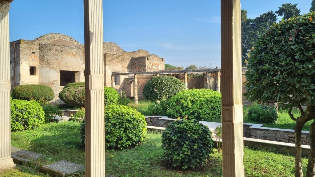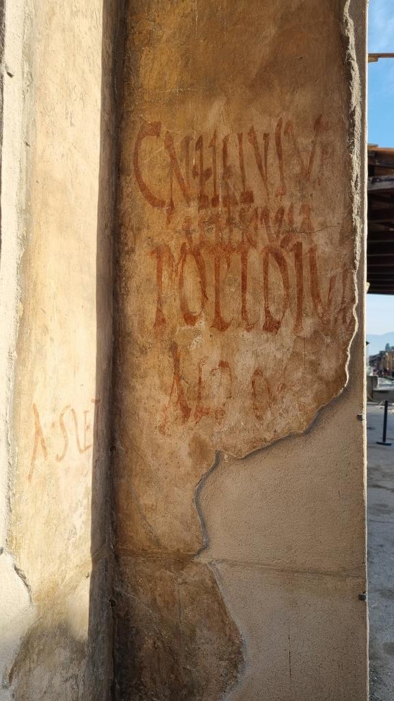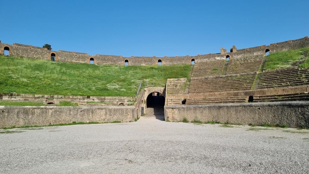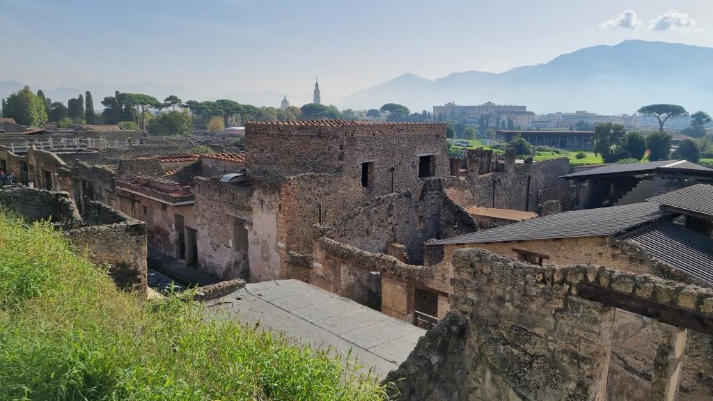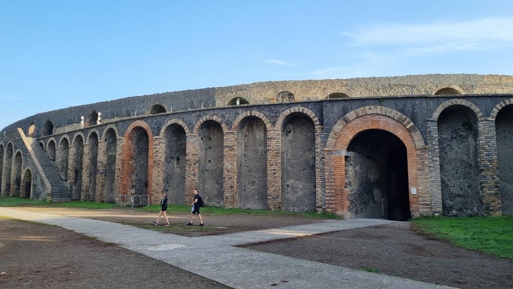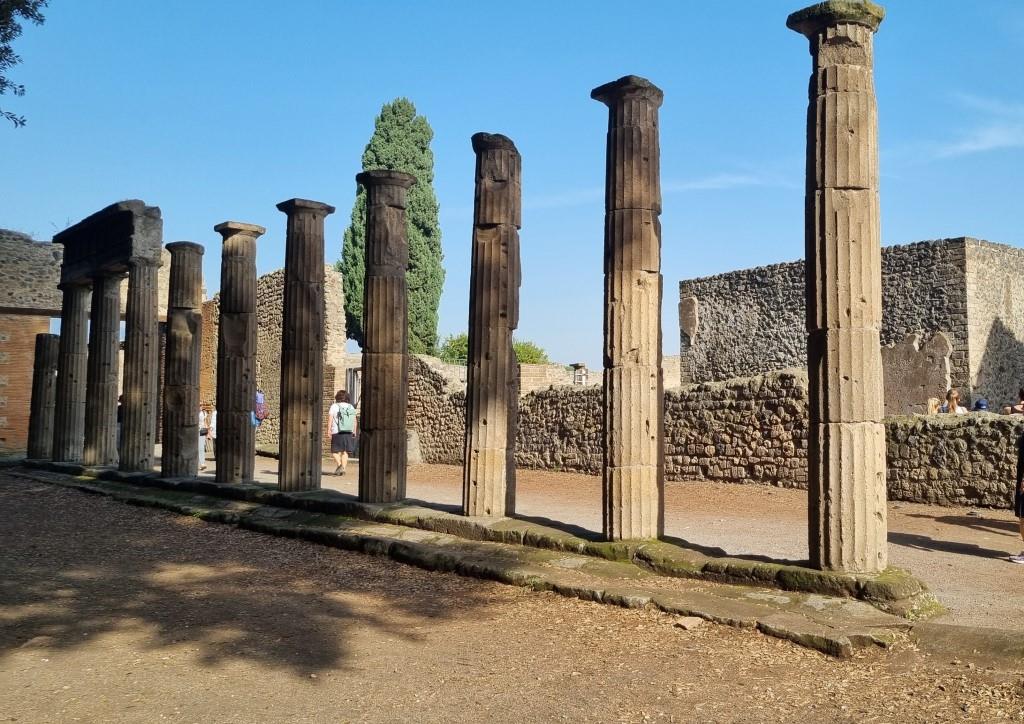 Auf unserer Amalfireise im Oktober 2024 haben wir Sorrent, Ischia, Capri, die Amalfiküste und Neapel besucht. Jetzt fehlt noch die Ausgrabungsstätte Pompeji und der Vesuv. Heute schliessen wir uns wieder unserer Reisegruppe an, da dieser Ausflug im Arrangement inbegriffen ist. Nach dem Frühstück holt uns unsere Reiseleiterin Josephine ab, die übrigens einen Superjob macht. Sie hat immer alles im Griff, organisiert alles perfekt und ist sehr sympatisch und witzig, ausserdem spricht sie sehr gut deutsch. Also sie holt uns ab und wir fahren mit dem Bus nach Pompeji. Heute liegen 4 Kreuzfahrtschiffe im Hafen von Neapel und es werden viele Menschen in Pompeji erwartet. Deshalb nehmen wir einen anderen Eingang und sind am Anfang noch fast alleine unterwegs. Gut gemacht Josephine.