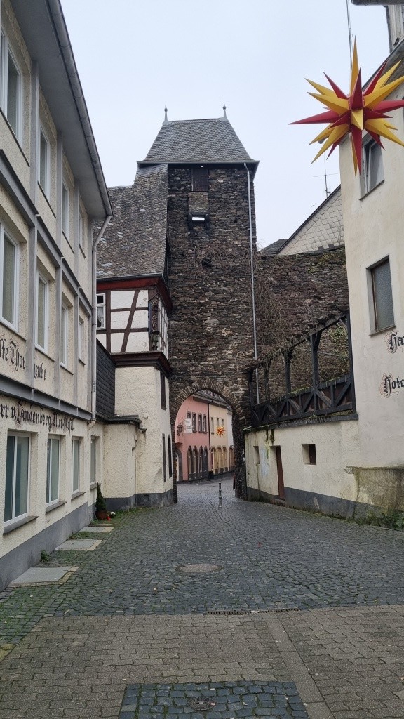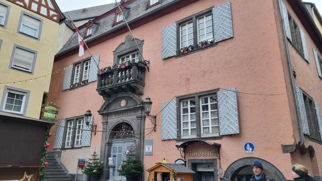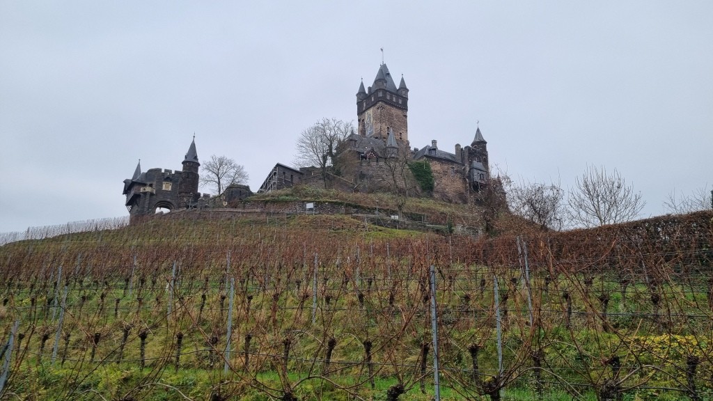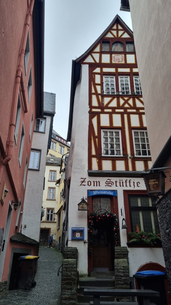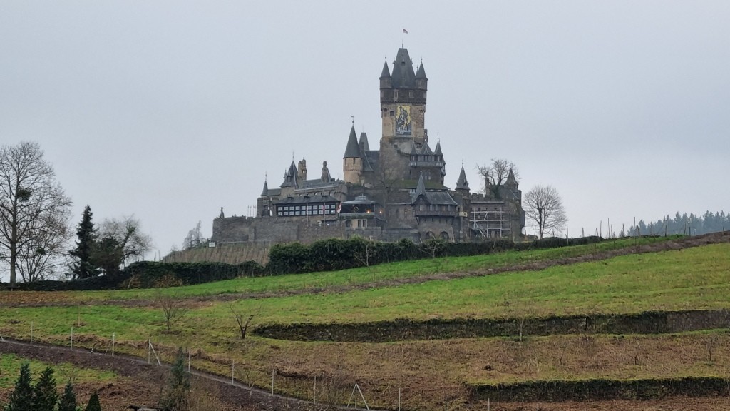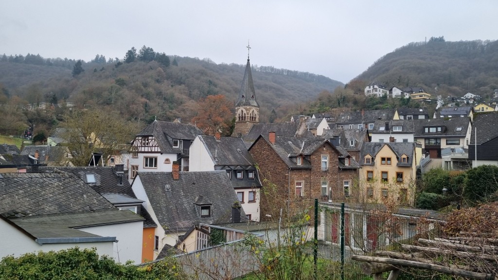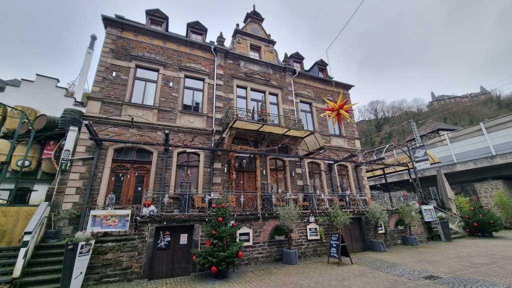 Wir machen es uns in der Kabine bequem vor unserem grossen Fenster, denn um 16:00 Uhr fährt unser Schiff los nach Bernkastel-Kues und wir wollen ja auch noch etwas von der schönen Fahrt sehen bevor es dunkel wird. Die Moselgegend ist bekannt für die Weingüter die sich an den steilen Hängen befinden. Eine schöne Gegend, die bestimmt im Sommer oder Herbst mit den Farben besser zur Geltung kommt als jetzt im Winter.