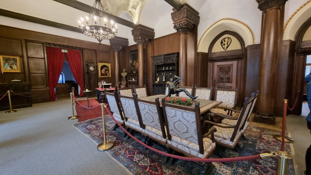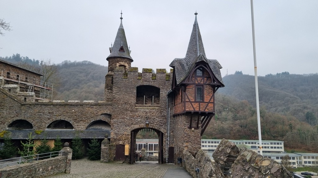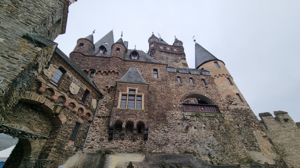 Wir beschliessen mit dem Shuttlebus hinauf zur Burg zu fahren und uns diese anzusehen. Der Bus kommt und fährt durch einen Wald einen Riesenumweg bis fast ganz hinauf zur Burg. Hier geniessen wir zuerst die schöne Aussicht, leider im Hochnebel und ohne einen Sonnenstrahl. Dann besichtigen wir die Burg auch von Innen. Eine wirklich schöne Burg mit toller Aussicht.