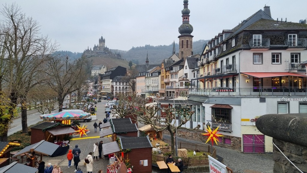 Jetzt wollen wir uns aber Cochem ansehen und spazieren über die Brücke in den überschaubaren Ort. Wir schlendern durch die hübschen Gassen und sehen die schöne Reichsburg über Cochem thronen.
