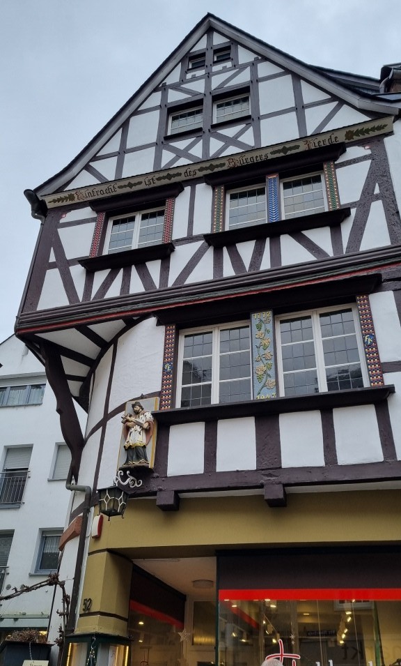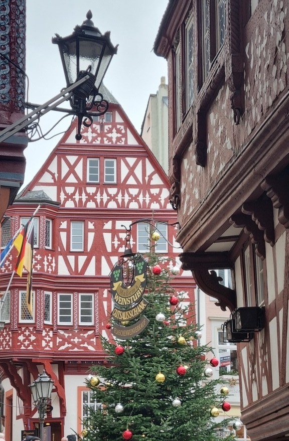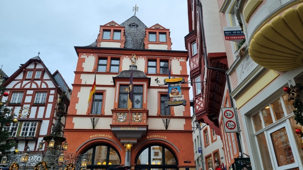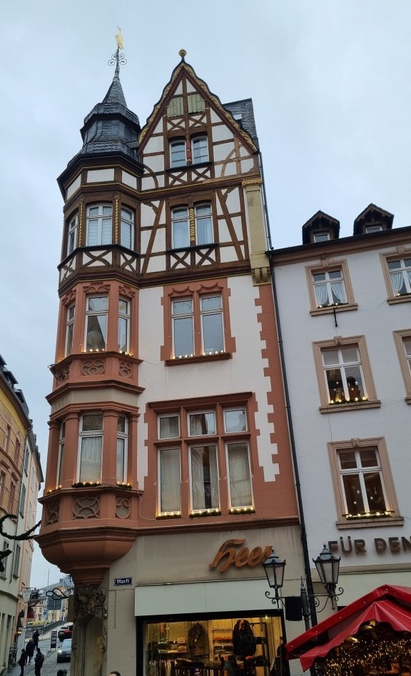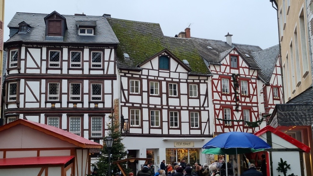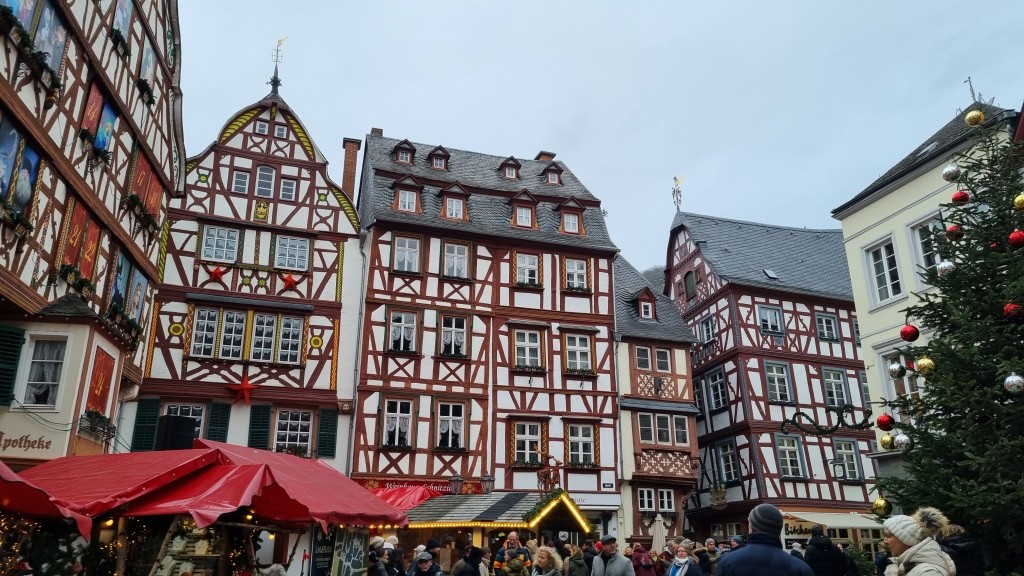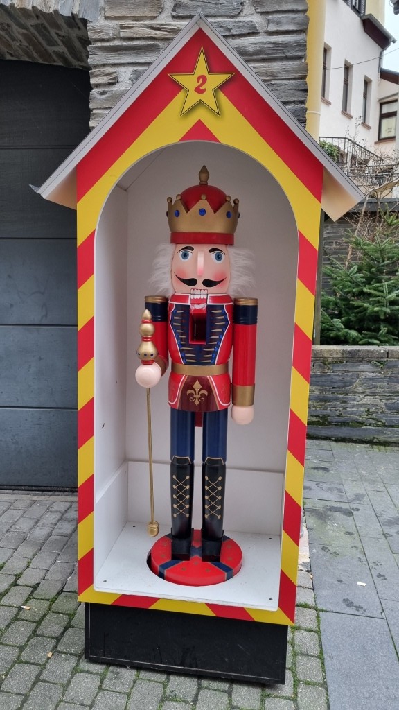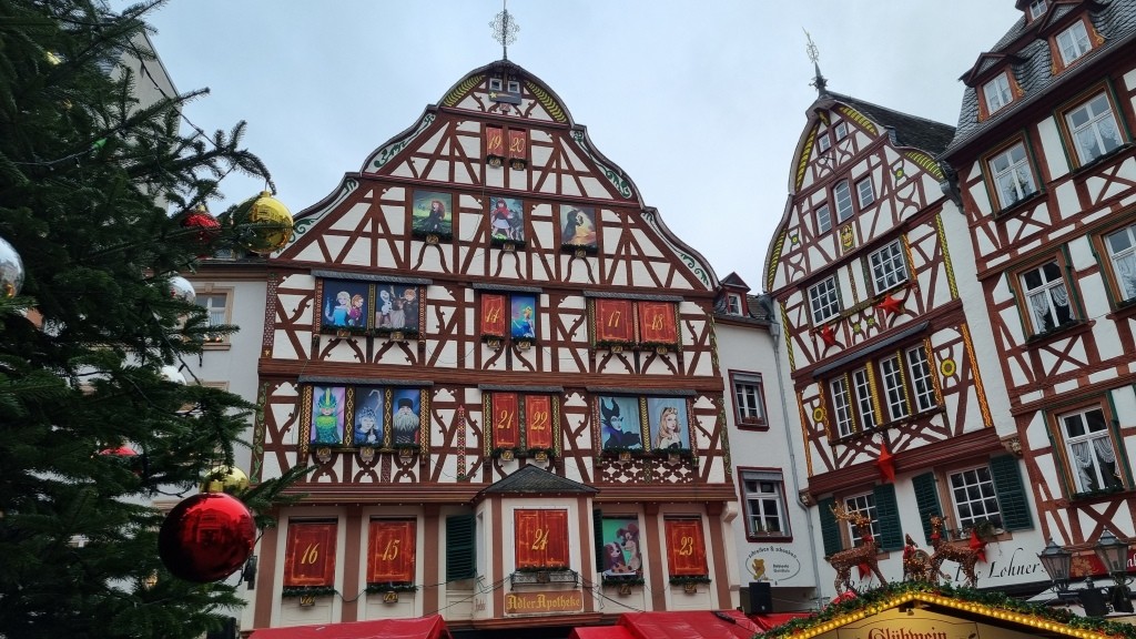 Nachdem wir in Bernkastel-Kues angelegt haben machen wir uns auf Erkundungstour durch den lieblichen Ort. Die Altstadt ist klein und überschaubar aber richtig schön herausgeputzt. Natürlich ist auch hier ein Weihnachtsmarkt und viel weihnachtliche Dekoration. Sogar einen modernen Adventskalender gibt es an einem Haus. Das Spitzhäuschen soll in einem Harry Potter Film zu sehen sein.