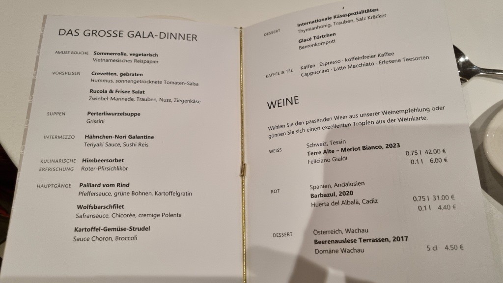 Wir genehmigen uns im Anschluss noch einen Drink in der Bar und zu unserem Erstaunen bekommen wir auch den geschenkt als Wiedergutmachung, weil das Dessert vergessen ging. Das hat sich aber fix rumgesprochen. Am späteren Abend ziehen wir uns zurück und schlafen gut auf dem fahrenden Schiff. Morgen sind wir in Trier und danach geht es wieder zurück nach Hause.