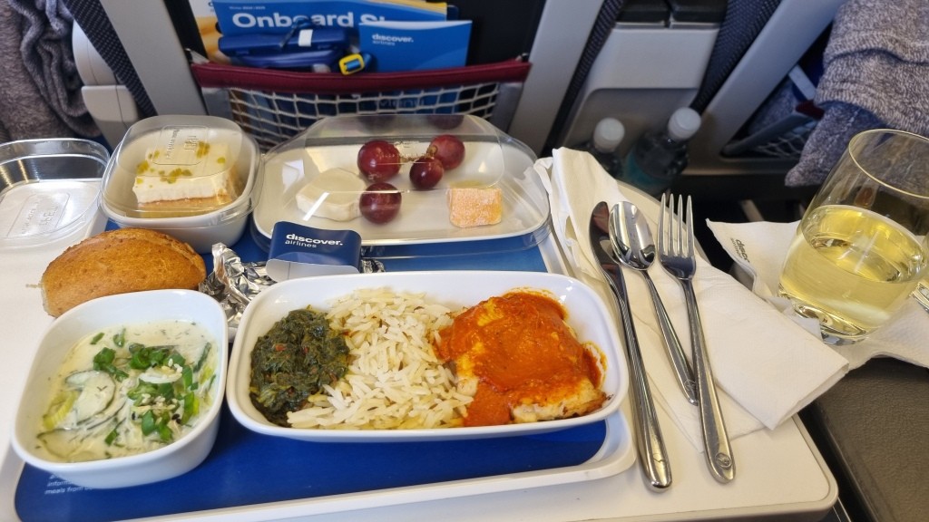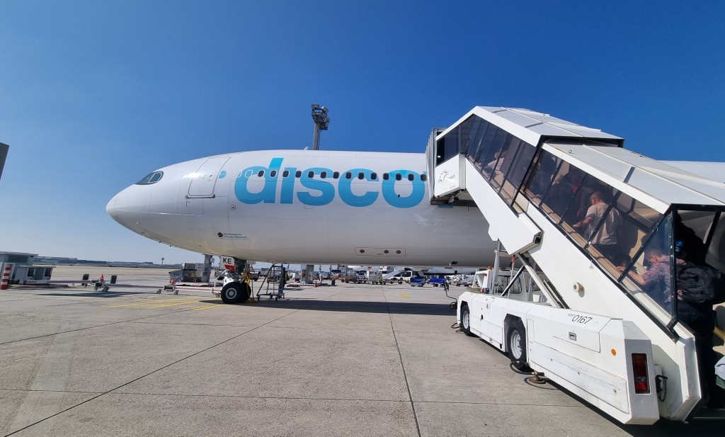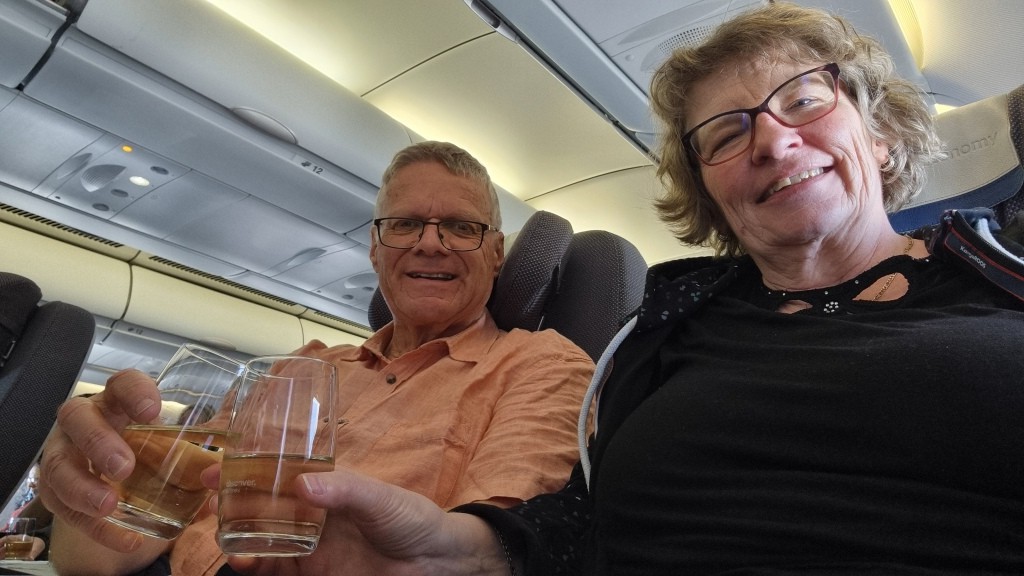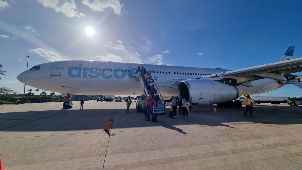 Alles klappt wie am Schnürchen. In Frankfurt landen wir pünktlich. Der Weg zum Gate zieht sich und als wir dort ankommen, können wir auch schon in die Discover Airline, ehemalige Eurowings, einsteigen. Als Premium Economy Gäste dürfen wir sogar vor der Economy einsteigen. Die Konfiguration der Sitze ist 2-3-2 und somit hat man schon mal mehr Platz als in der normalen Economy. Das Abteil ist auch getrennt, sodass man nicht das Gefühl hat in einem Riesenflieger zu sitzen. Sitzabstand ist auch gut. Es gibt Trinkgläser aus echtem Glas und Porzellangeschirr und richtiges Besteck. Wir finden dass wir hier mehr Platz haben als in der Economy und würden den Aufpreis wieder in Kauf nehmen. Der Flug verlief angenehm, das Essen war ok. Getränke wurden laufend gebracht. Ein wenig geschlafen, ein Film geschaut und schon sind wir in La Romana gelandet. Pünktlich um 16:45 Uhr mit 6 Stunden Zeitverschiebung.