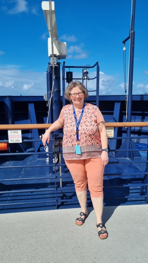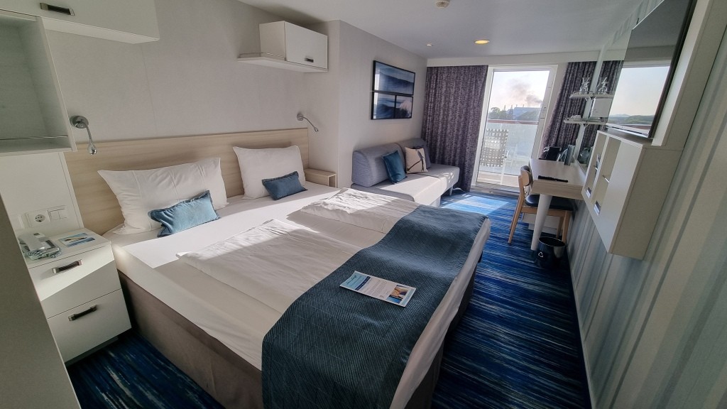 Man könnte meinen wir sind alleine auf dem Schiff aber alle tummeln sich auf dem Sonnendeck und am Pool oder sind noch beim Frühstück. Da wir lieber Ruhe haben gehen wir auf unsere Kabine und geniessen den Balkon.