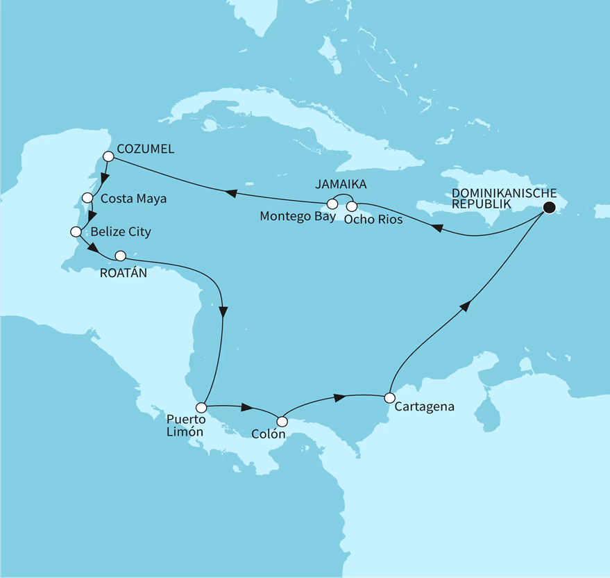 Auf unserer Kreuzfahrt im März/April 2025 haben wir folgende Häfen angelaufen:
