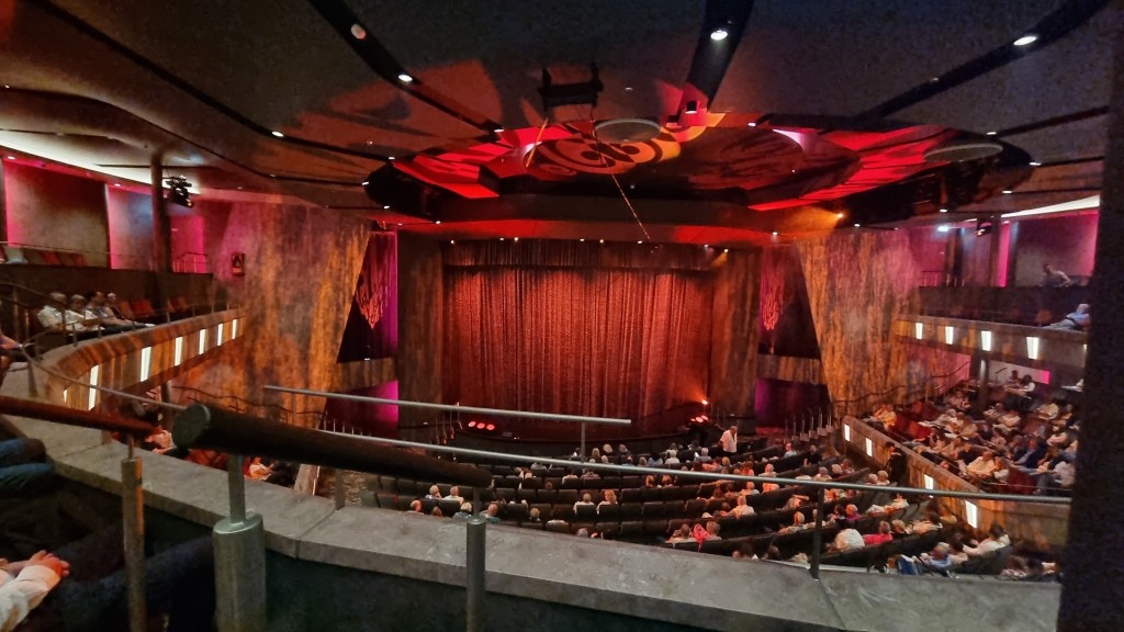 Nach dem Essen haben wir uns im Theater eine Show angesehen. Dann sind wir in die Kabine schlafen gegangen. Morgen müssen wir früh raus. Wir besuchen Tulum auf Mexico.