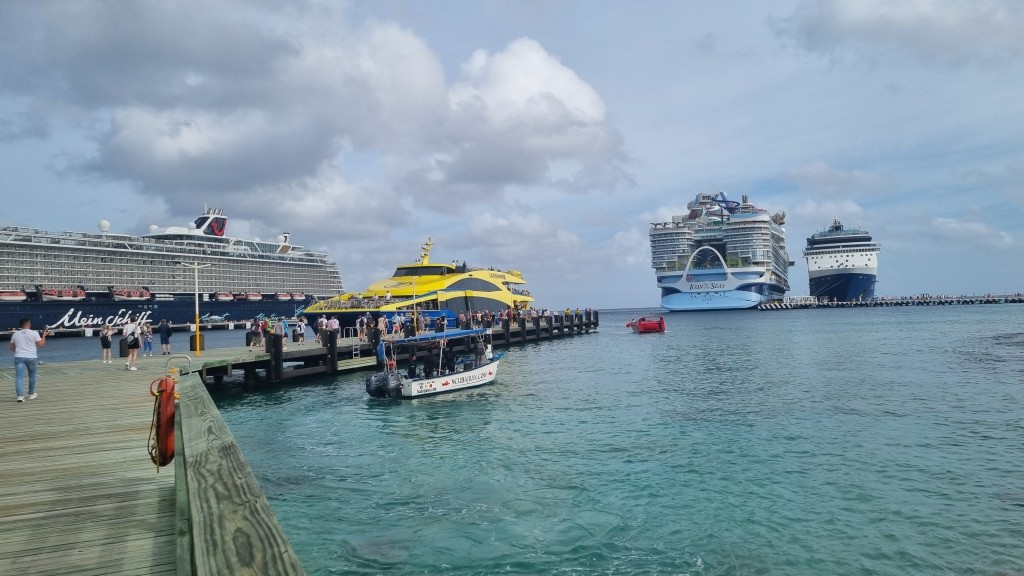 Am frühen Morgen fährt die Mein Schiff 1 im Hafen Cozumel ein. Das ist nicht selbstverständlich. Die letzten paar Reisen fanden jeweils ohne den Hafen Cozumel statt, da der Hafen für die vielen Schiffe keine Kapazitäten mehr hatte, musste die Mein Schiff 1 ein paar Mal den Hafen auslassen.