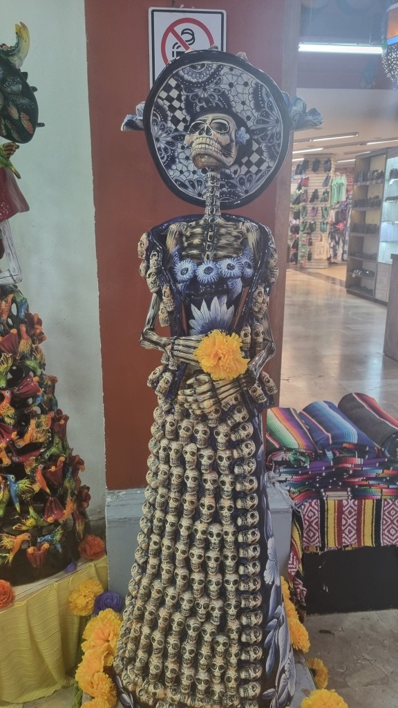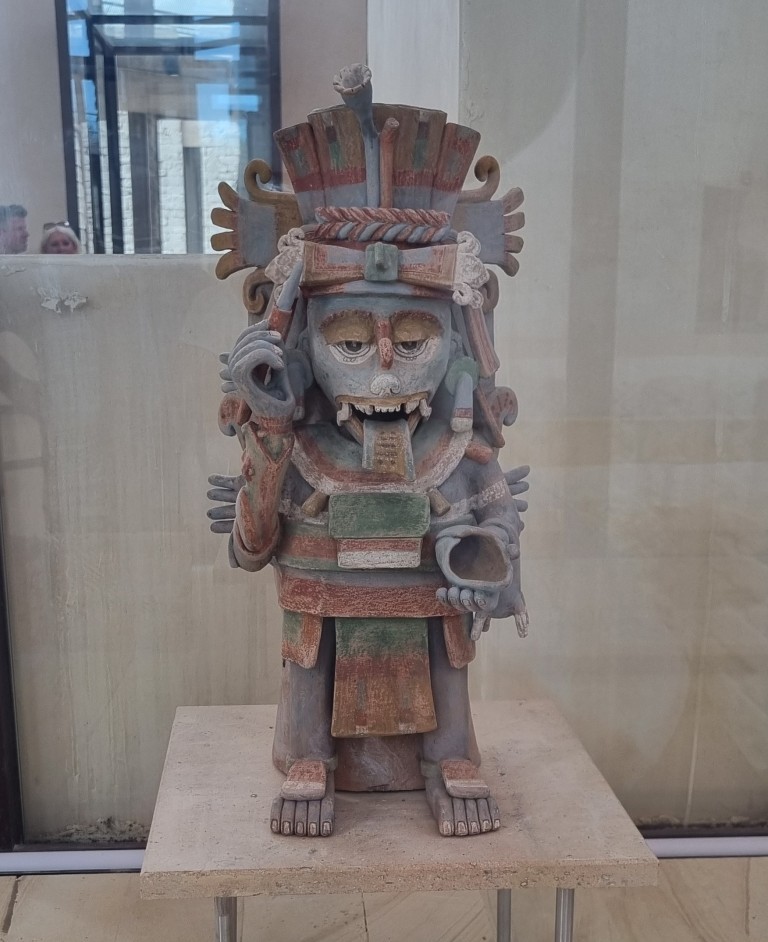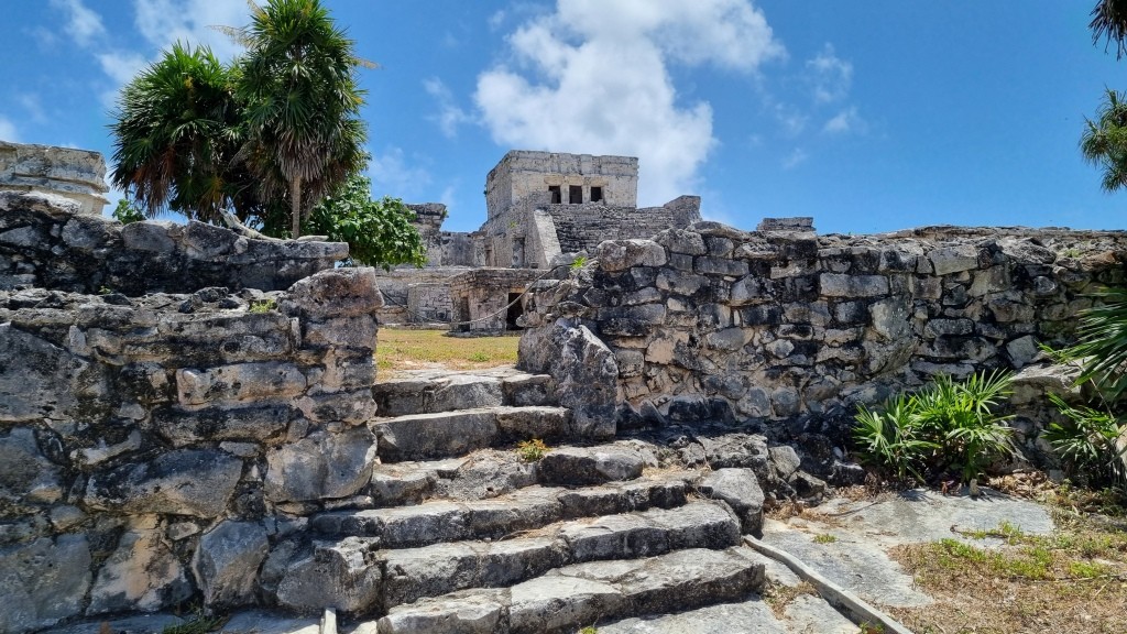 In Tulum werden wir durch die Mayastätte geführt und können uns die Ruinen am Meer ausgiebig ansehen. Sehr eindrücklich. Die Anzahl Besucher hält sich in Grenzen. Wir können viele Bilder machen ohne dass dauernd jemand Fremdes auf dem Bild ist. Dann besuchen wir ein eisgekühltes Museum. Der neue Rundturm ist leider heute wegen starkem Wind geschlossen. So haben wir am Eingang noch Zeit für einen kleinen Snack und ein paar Souvenirs zu kaufen.