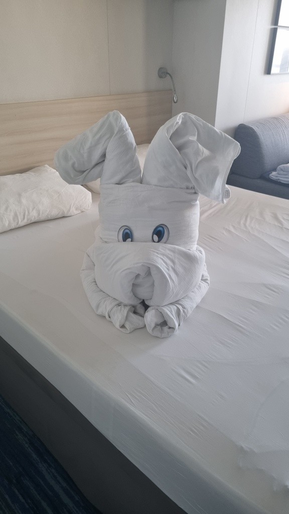 Zurück auf dem Schiff werden wir von unserem neuen Haustier begrüsst. Danach entspannen wir etwas auf unserem Balkon, bevor es zum Apéro und Abendessen geht. Morgen sind wir in Roatan – Honduras. Wir haben die Nachricht von justfloatroatan, bei denen wir einen Ausflug gebucht haben, dass sie diesen einen Tag vorverlegen und alles wie geplant abläuft. Da sind wir aber froh. Vielen Dank an justfloatroatan. Am Abend gab es noch eine Poolparty, die wir uns ein wenig ansehen.