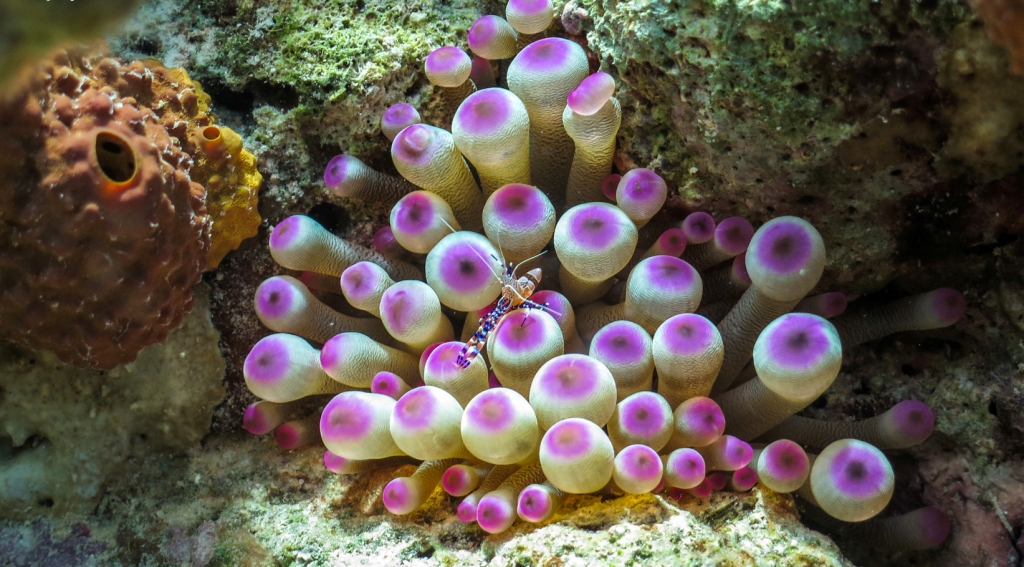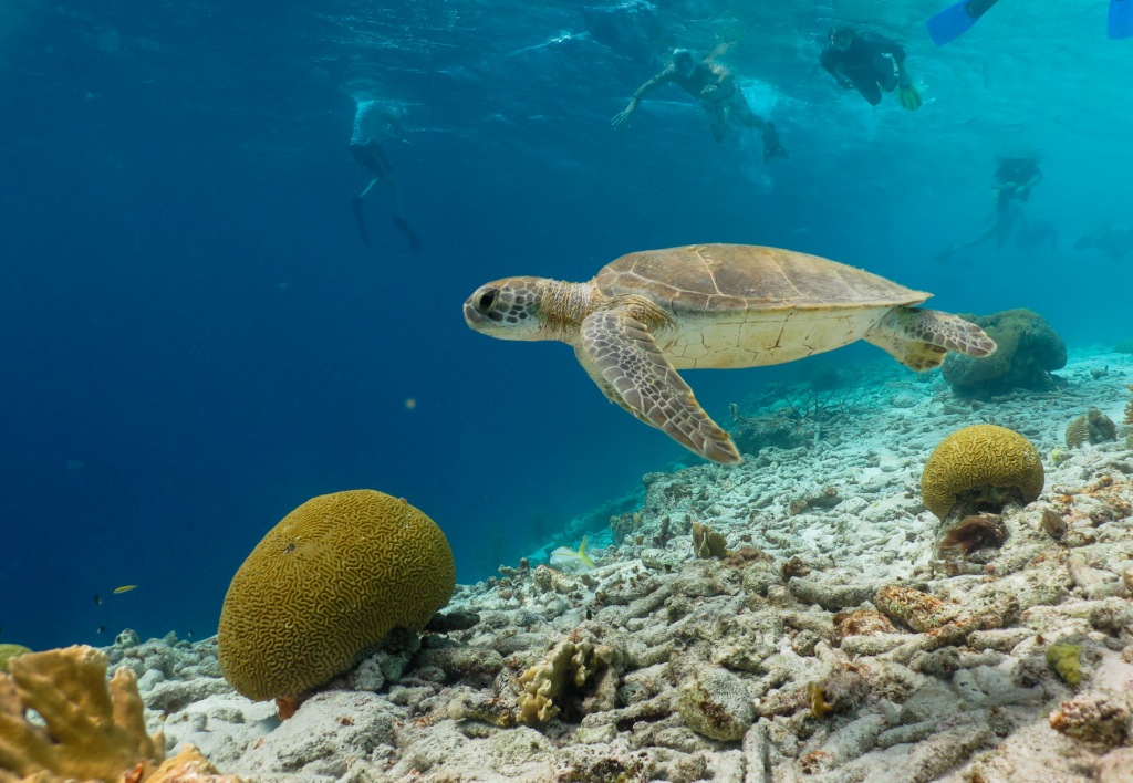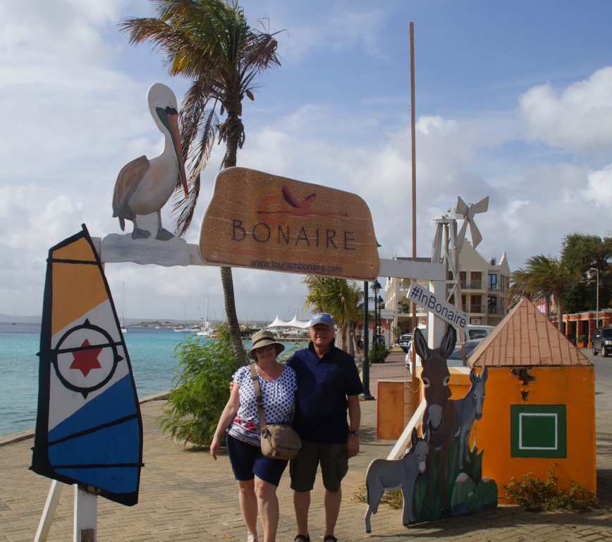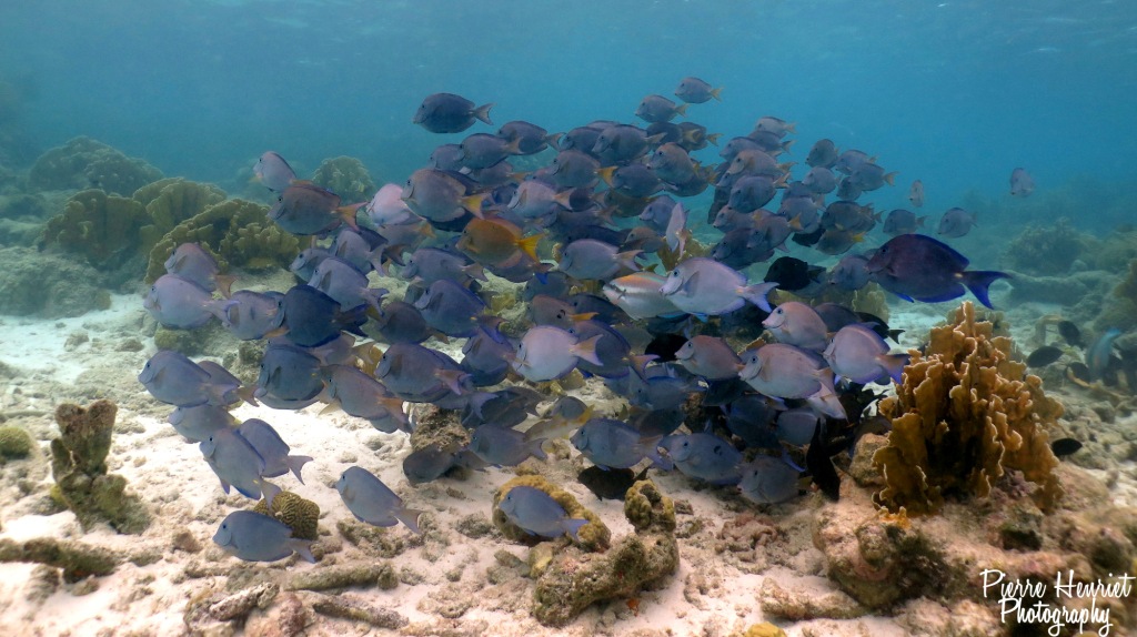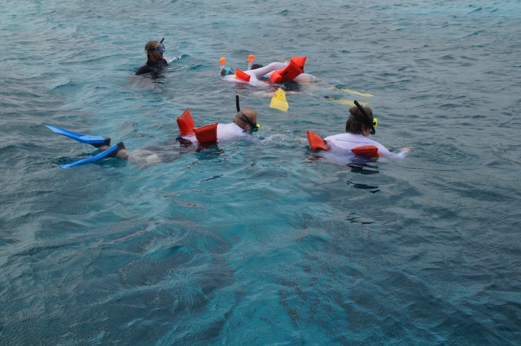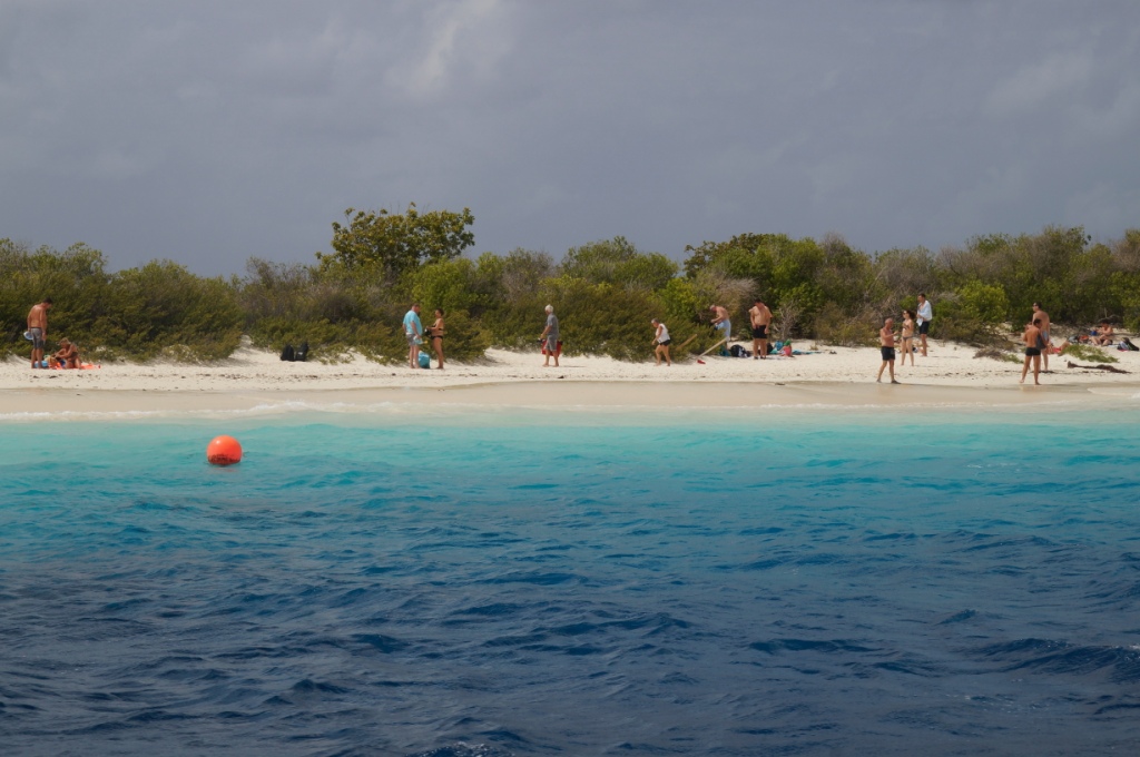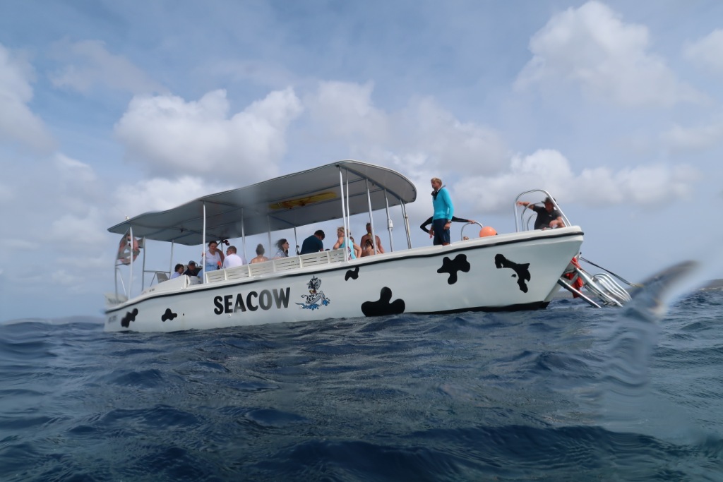 Wir fahren mit der Sea Cow zu einem vorgelagerten Riff bei Klein Bonair. Auf dem Weg dorthin werden uns Schnorchel und Flossen verteilt und alles erklärt, wie das Schnorcheln abläuft. Es werden jeweils 3 Gruppen mit einem Guide zu Wasser gehen. Ein Fotograf ist dabei, der Fotos unter Wasser macht, die wir dann auf einem Stick kaufen können. Schon sind wir beim ersten Spot angelangt und langsam gehen alle ins Wasser, ausser Andi, dem ist das nicht geheuer unter Wasser. Er bleibt im Boot und macht Fotos von oben.