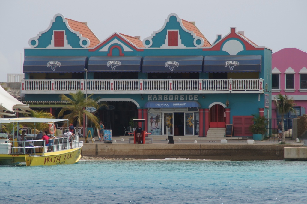 Wir legen am frühen Morgen in Bonair an, frühstücken im Anckelmannsplatz und sind um 8:30 Uhr am Treffpunkt in der Schaubar. Heute Vormittag haben wir einen Schnorcheltrip mit der Sea Cow bei TUI Cruises gebucht. Wir verlassen das Schiff und sehen schon das kleine Sea Cow Boot neben unserem Riesenschiff, so dass wir nur kurz rüberlaufen müssen. Wir sind etwa 20 Personen und sobald alle an Bord sind, geht es schon los. Zuerst fahren wir an der Mein Schiff vorbei. Hier wird einem bewusst, wie riesig so ein Kreuzfahrtschiff ist.