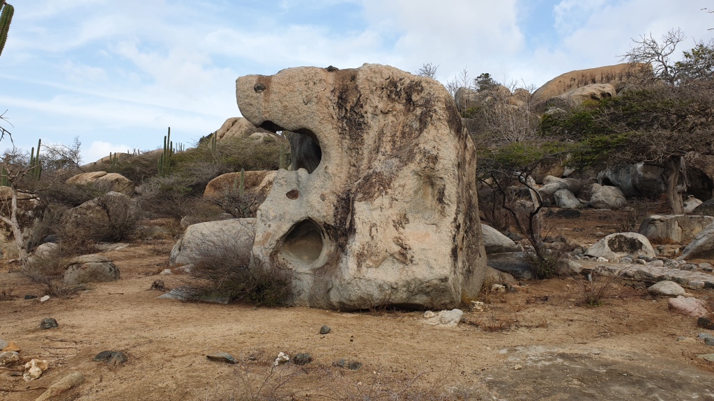 Am frühen Morgen erreichen wir Aruba. Wieder haben wir einen Halbtagesausflug mit TUI Cruises gebucht „Inselimpressionen und Strandaufenthalt“. Wir gehen um 7:00 Uhr frühstücken und treffen uns im Theater für den Ausflug. Zuerst geht es mit dem Bus zu den Ayo Rock Formationen. Hier gibt es interessante Steinformationen und ein Haufen Kakteen. Die Felsen erinnern mich an die Remarkable Rocks in Australien.