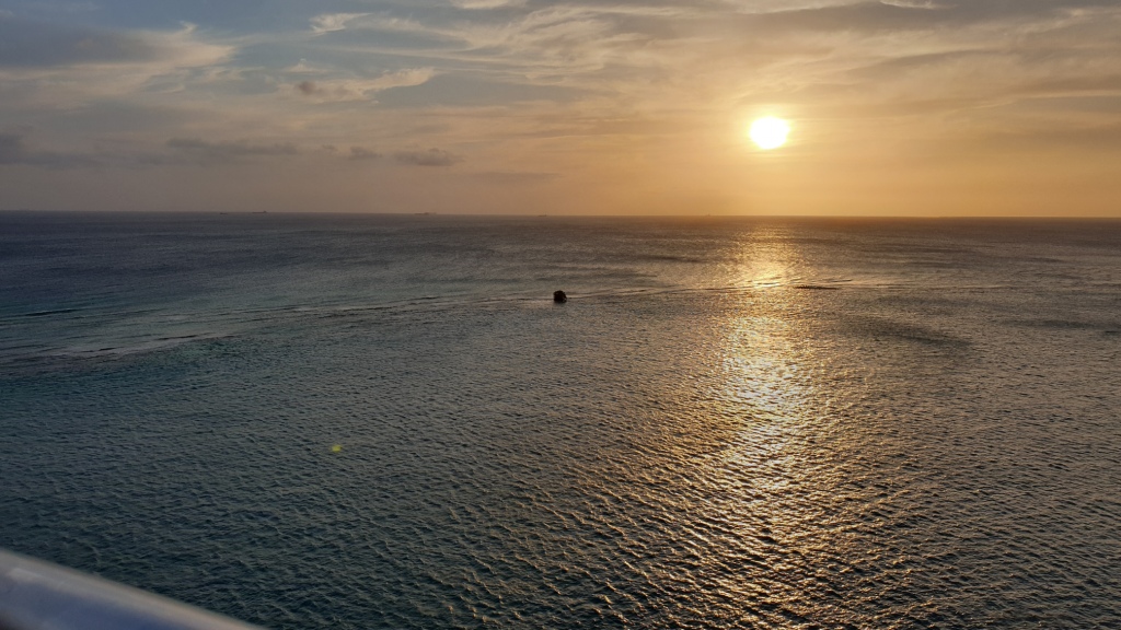Nach einem Spaziergang an Deck fallen wir müde in die bequemen Betten. Morgen können wir endlich ausschlafen. Der letzte Seetag, den wir gemütlich angehen.