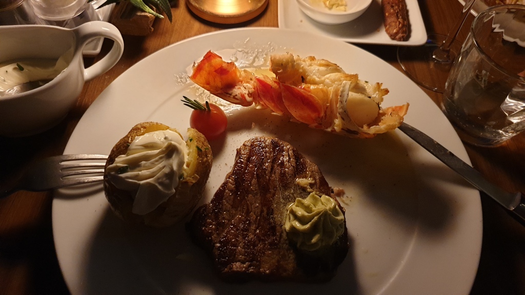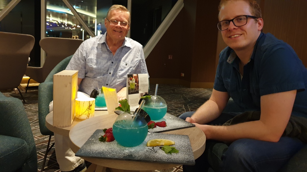 Heute abend wollen wir im Steakhouse Surf & Turf essen, ein Bezahlrestaurant, das zuhinterst im Schiff beim Diamanten zu finden ist. Zuvor genehmigen wir uns einen Drink in der Grossen Freiheit in der Diamantbar.