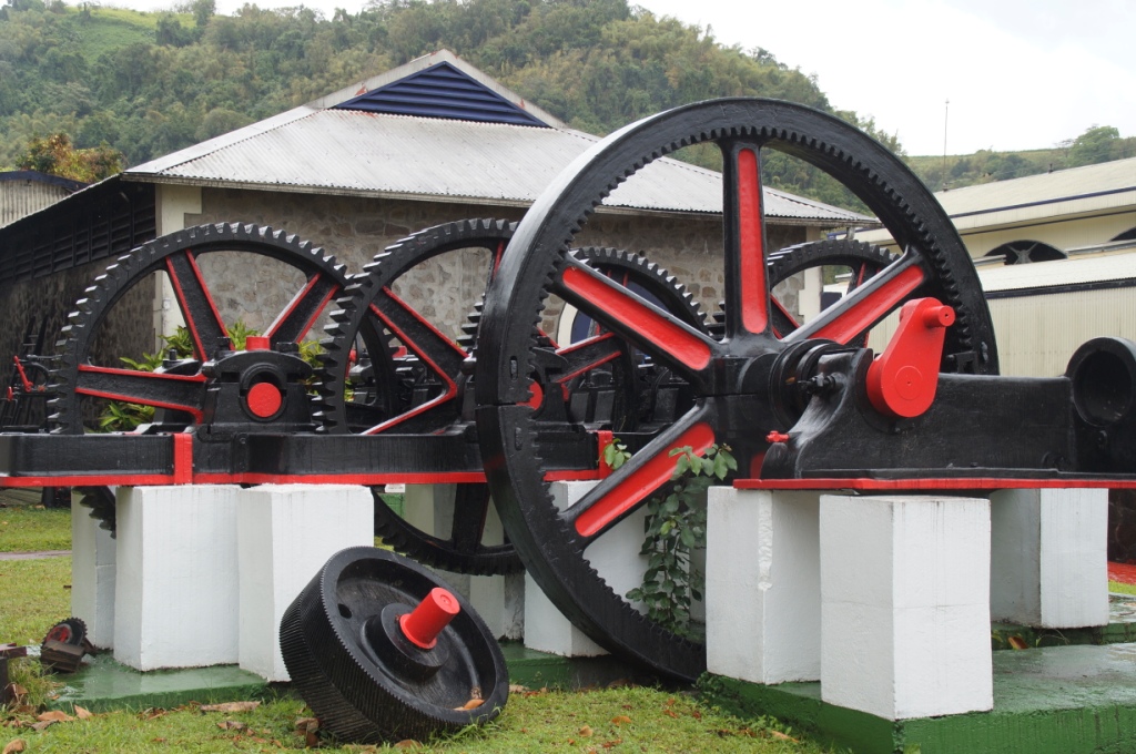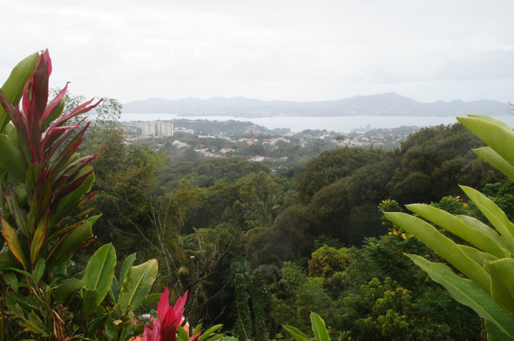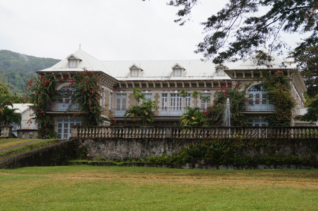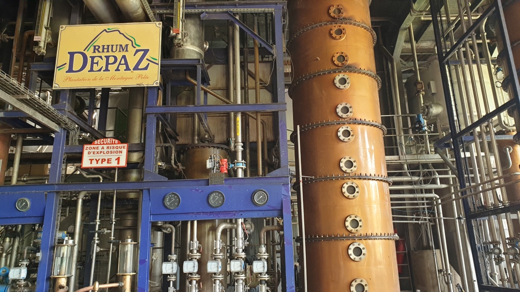 Es ist Sonntag, die Kirche scheint gut besucht zu sein. Wir blicken nur kurz rein und sehen uns die Kirche von aussen an und die Aussicht auf Fort-de-France. Leider ziehen Wolken umher und es fängt an zu tröpfeln. Wieder zurück im Bus fahren wir weiter Richtung Norden durch die hügelige und grüne Landschaft zur Depaz Rumdestillerie.