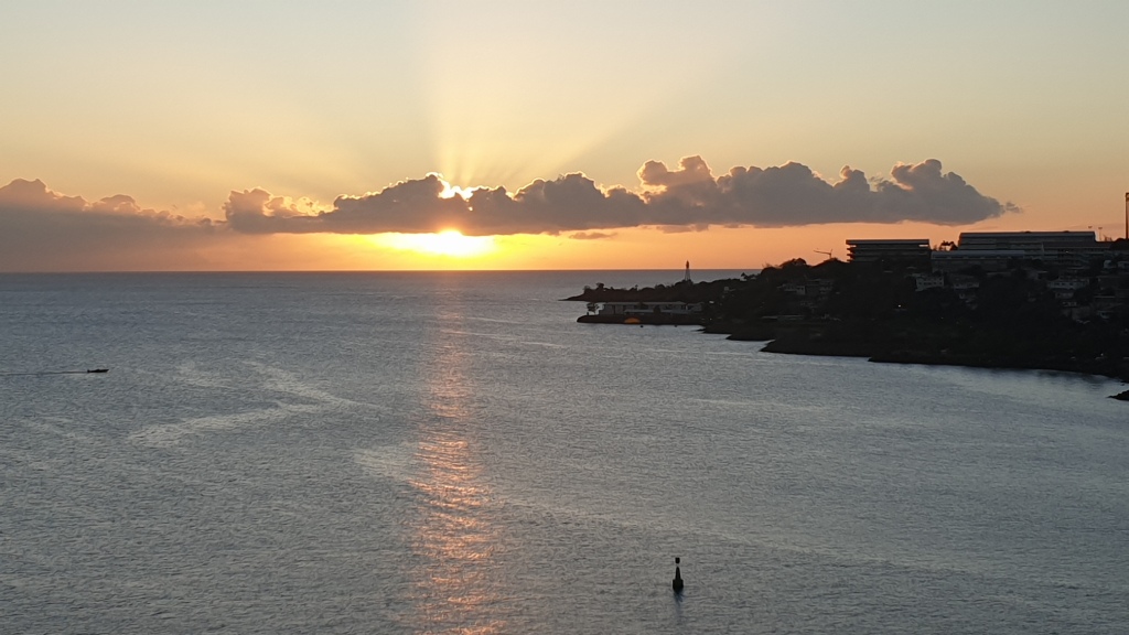 Wir kommen vorbei an der Kathedrale Saint Louis. Wie es aussieht sind alle Leute in der Kirche. Die Türen sind offen und man hört den Pfarrer predigen. Nach dem Rundgang laufen wir zurück zum Schiff. Die Restaurants und Läden sind alle geschlossen, so nehmen wir den Apéro auf dem Schiff in der Aussenalster-Bar und beobachten das Ablegen des Schiffes. Um 19:00 h geht es weiter Richtung Barbados. Das leckere Abendessen genehmigen wir uns wieder im Atlantik Restaurant und wie jeden Abend bummeln wir durchs Schiff und nehmen noch einen Schlummerbecher in einer der vielen Bars. Für den nächsten Tag haben wir einen Schnorcheltrip gebucht. Mal schauen wie das wird, wir waren noch nie schnorcheln.